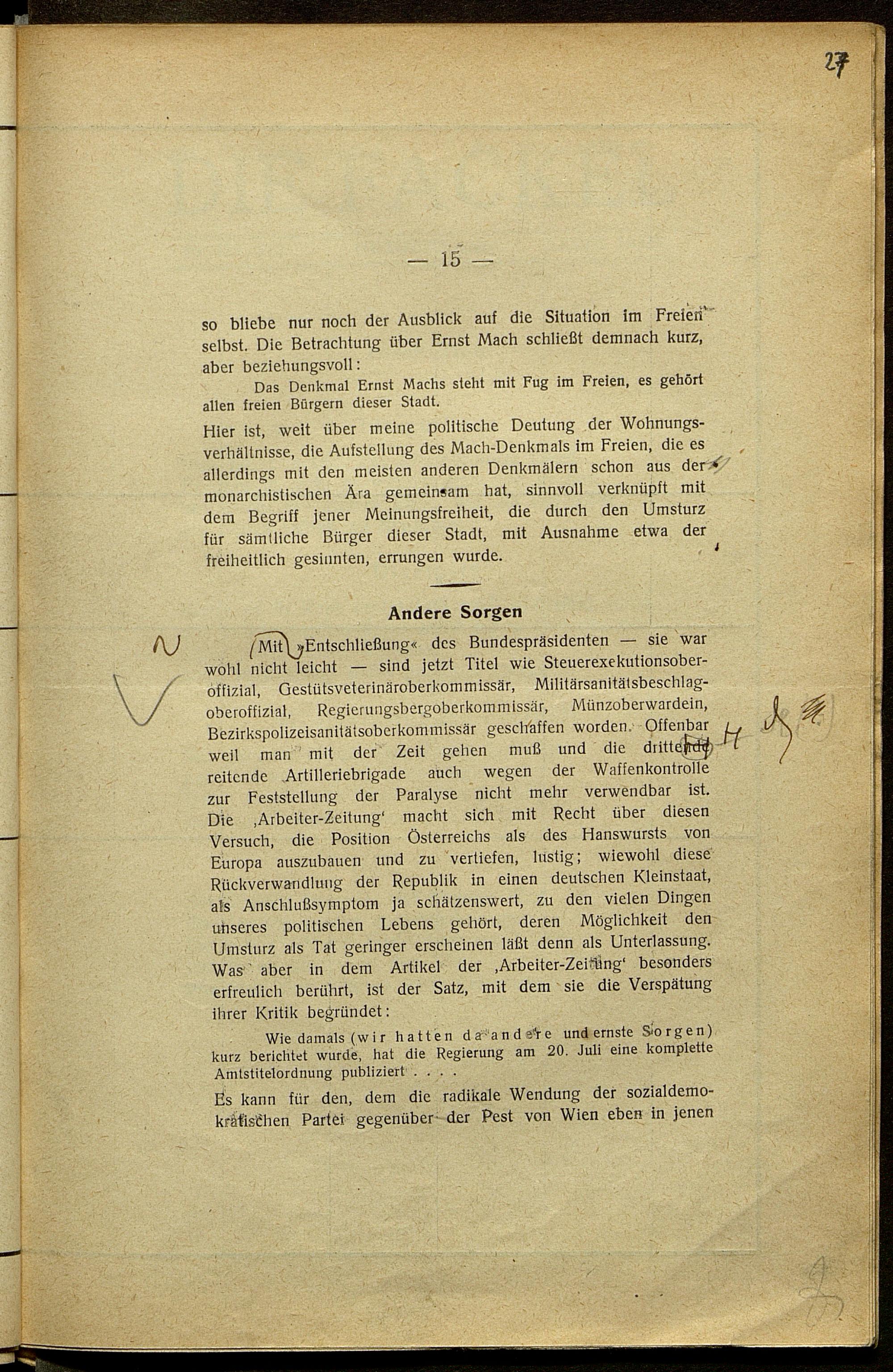 Druckfahnen von Karl Kraus zur Fackel Nr. 735/742