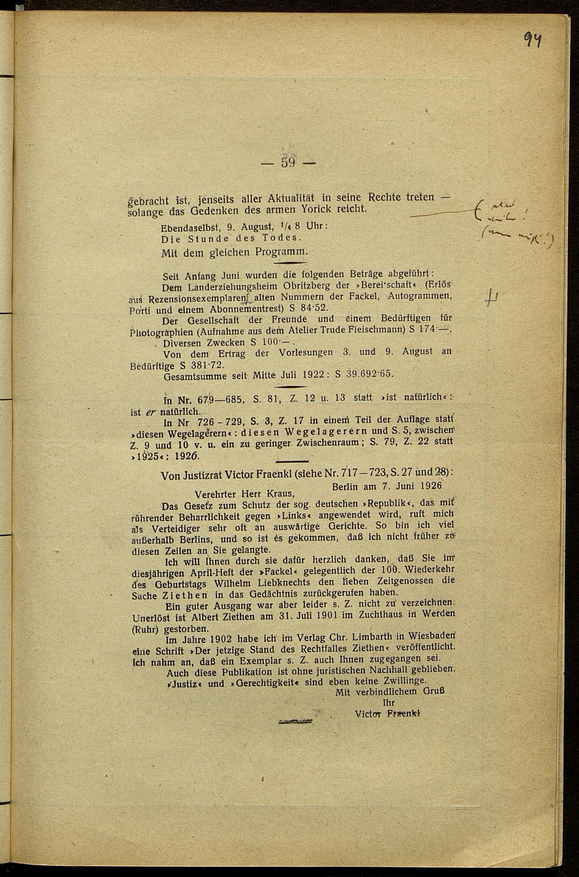 Druckfahnen von Karl Kraus zur Fackel Nr. 735/742