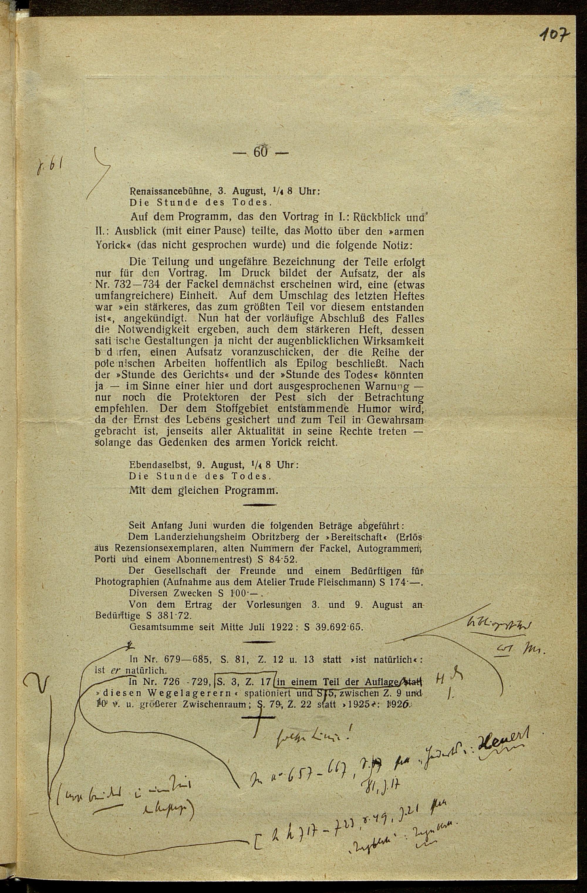 Druckfahnen von Karl Kraus zur Fackel Nr. 735/742