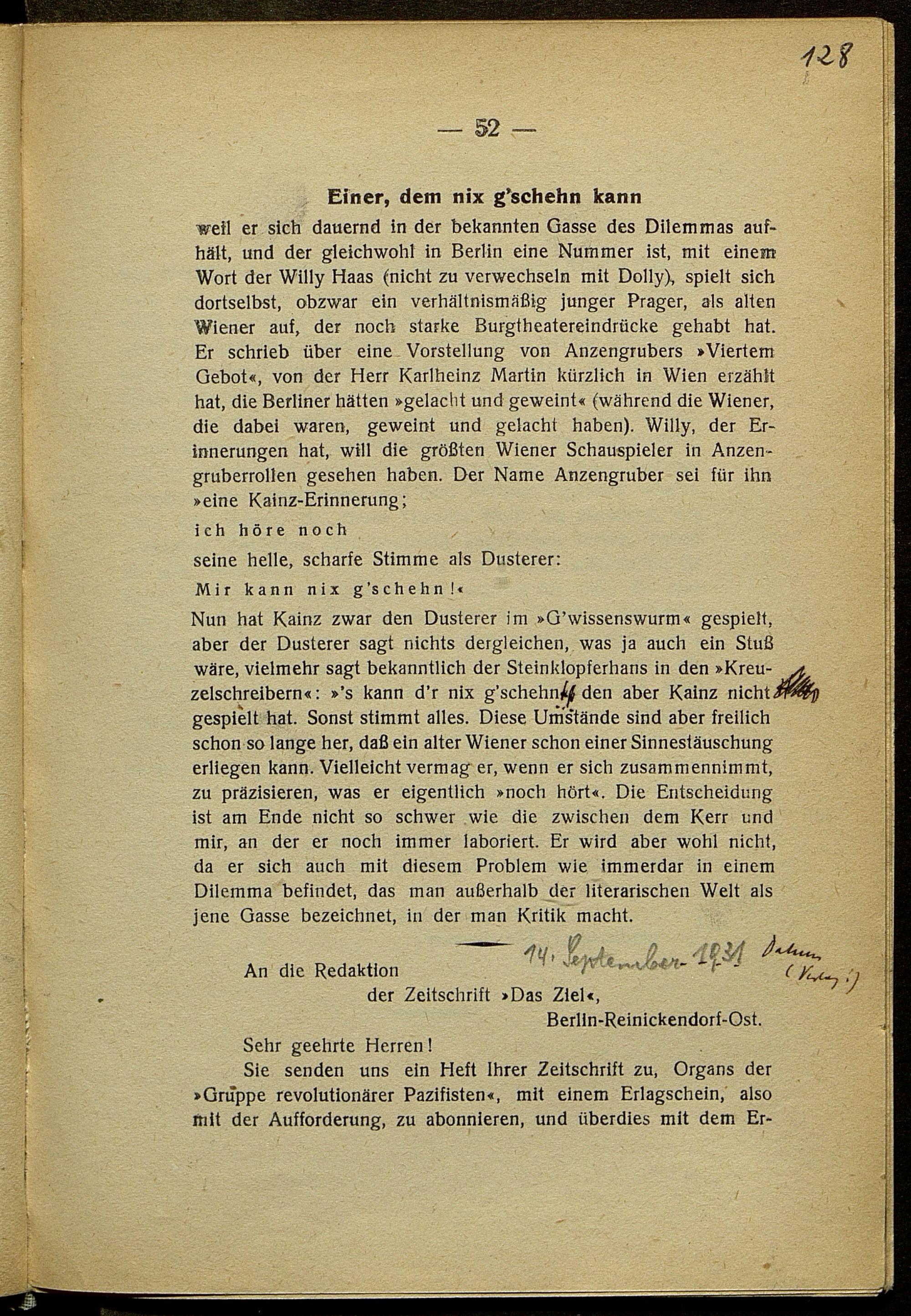 Ergänzte Korrekturbögen zur Fackel Nr. 864/867