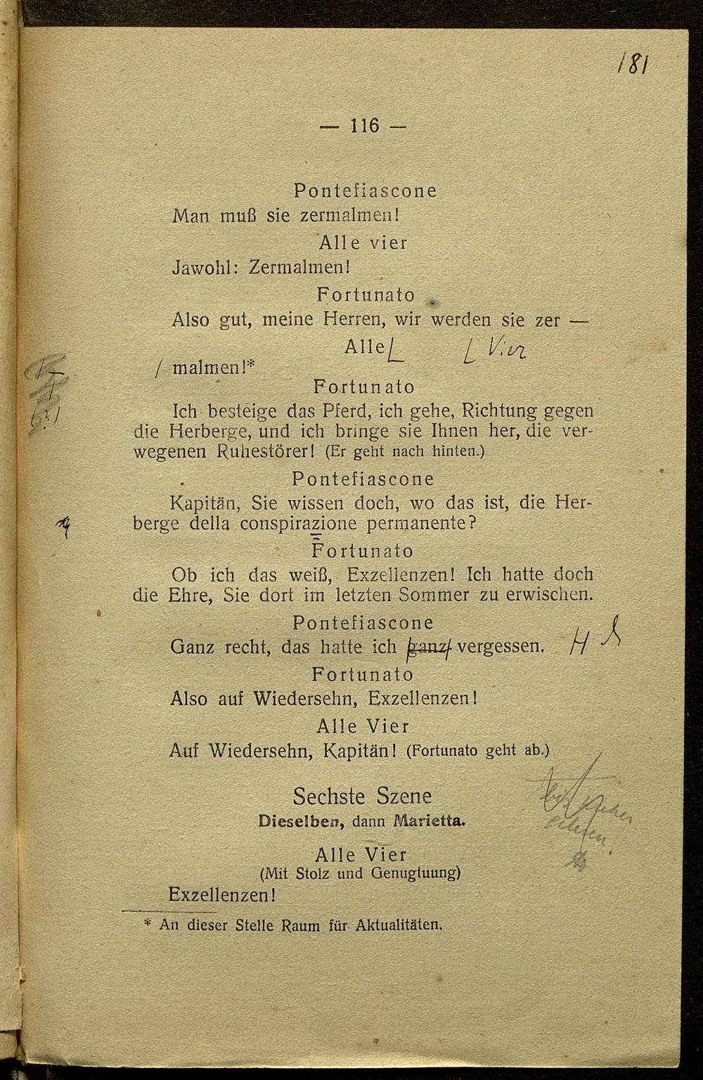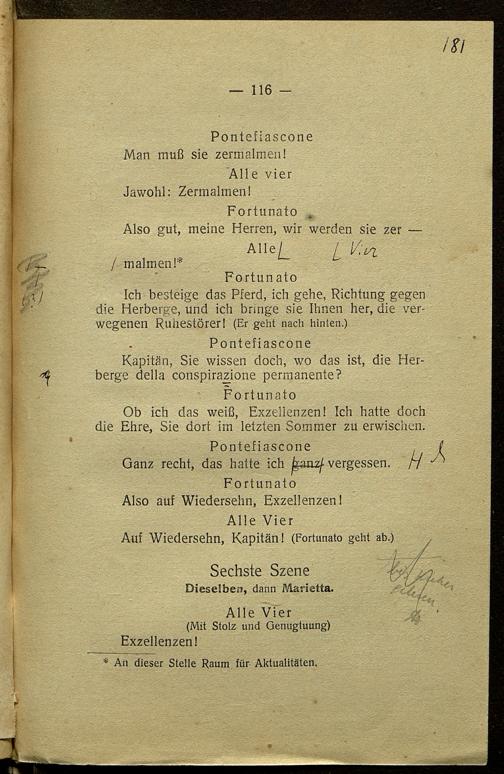 Korrekturbögen des 1.-3. Umbruchs der Nachdichtung der Operette "Madame l'Archiduc"