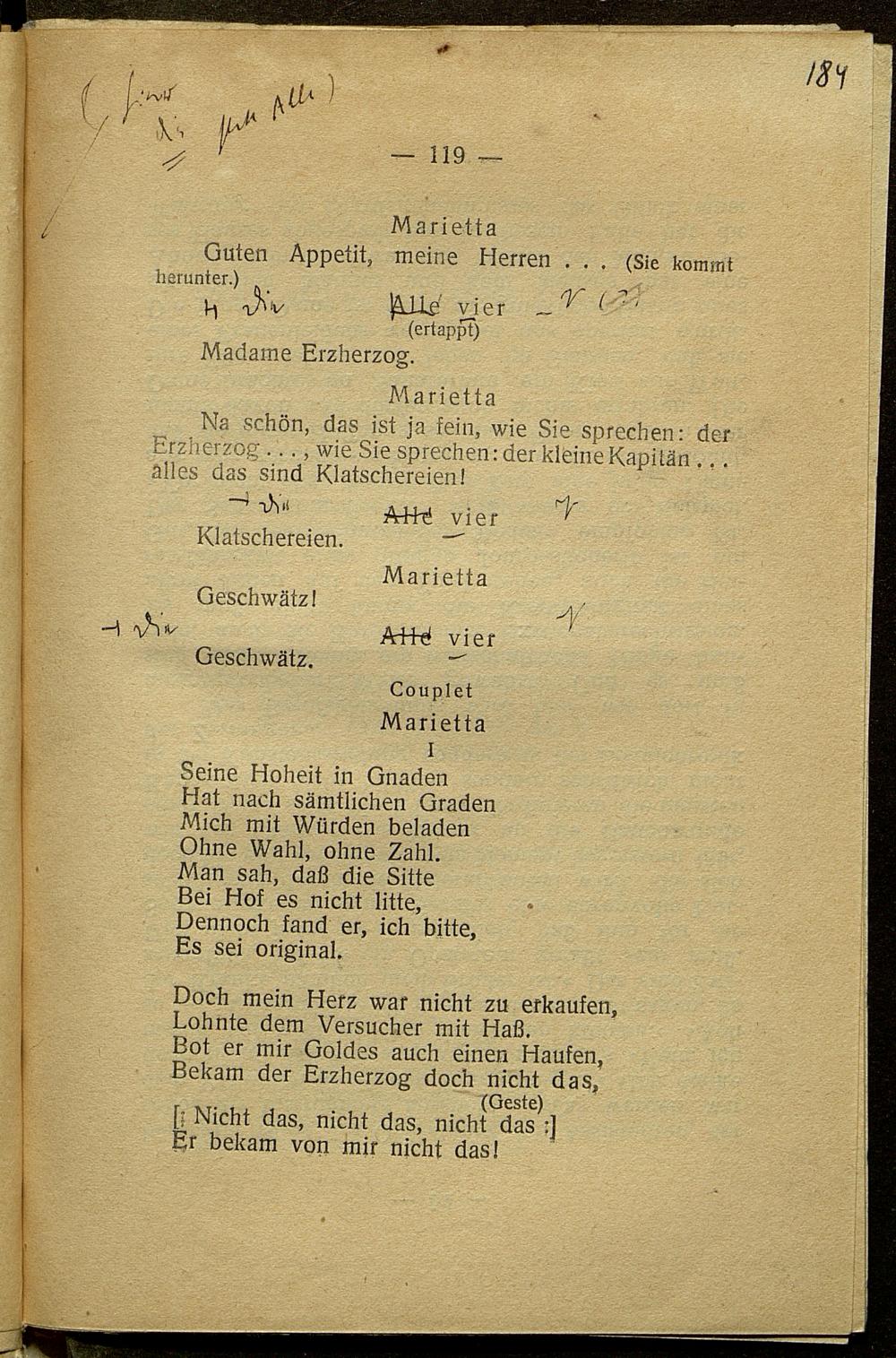Korrekturbögen des 1.-3. Umbruchs der Nachdichtung der Operette "Madame l'Archiduc"