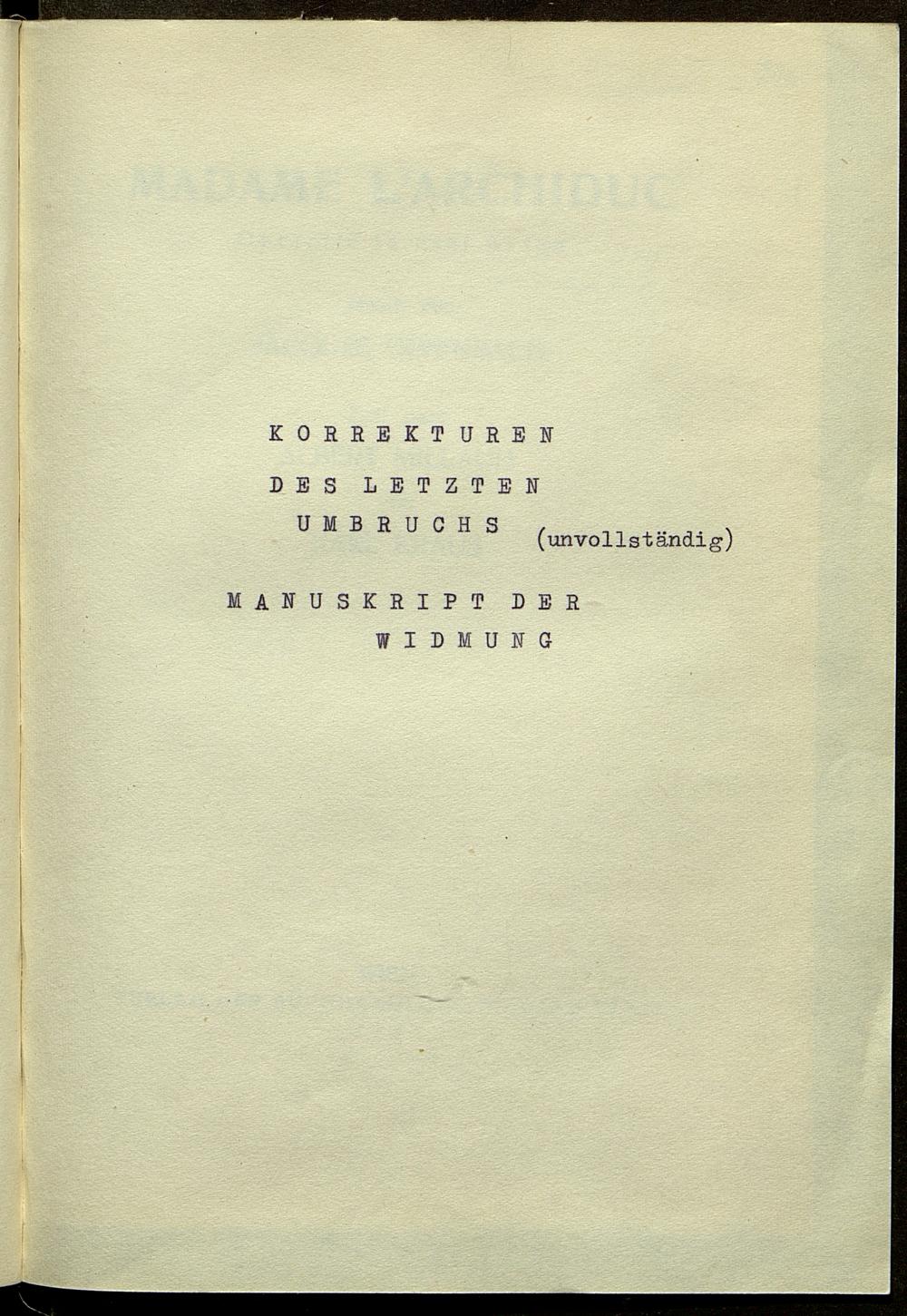 Korrekturbögen des 1.-3. Umbruchs der Nachdichtung der Operette "Madame l'Archiduc"