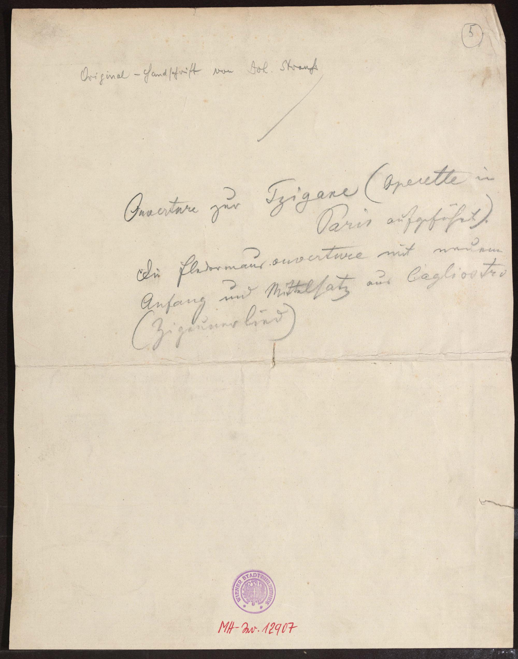 [Ouverture zur Operette "La] Tzigane" / [von Johann Strauss]