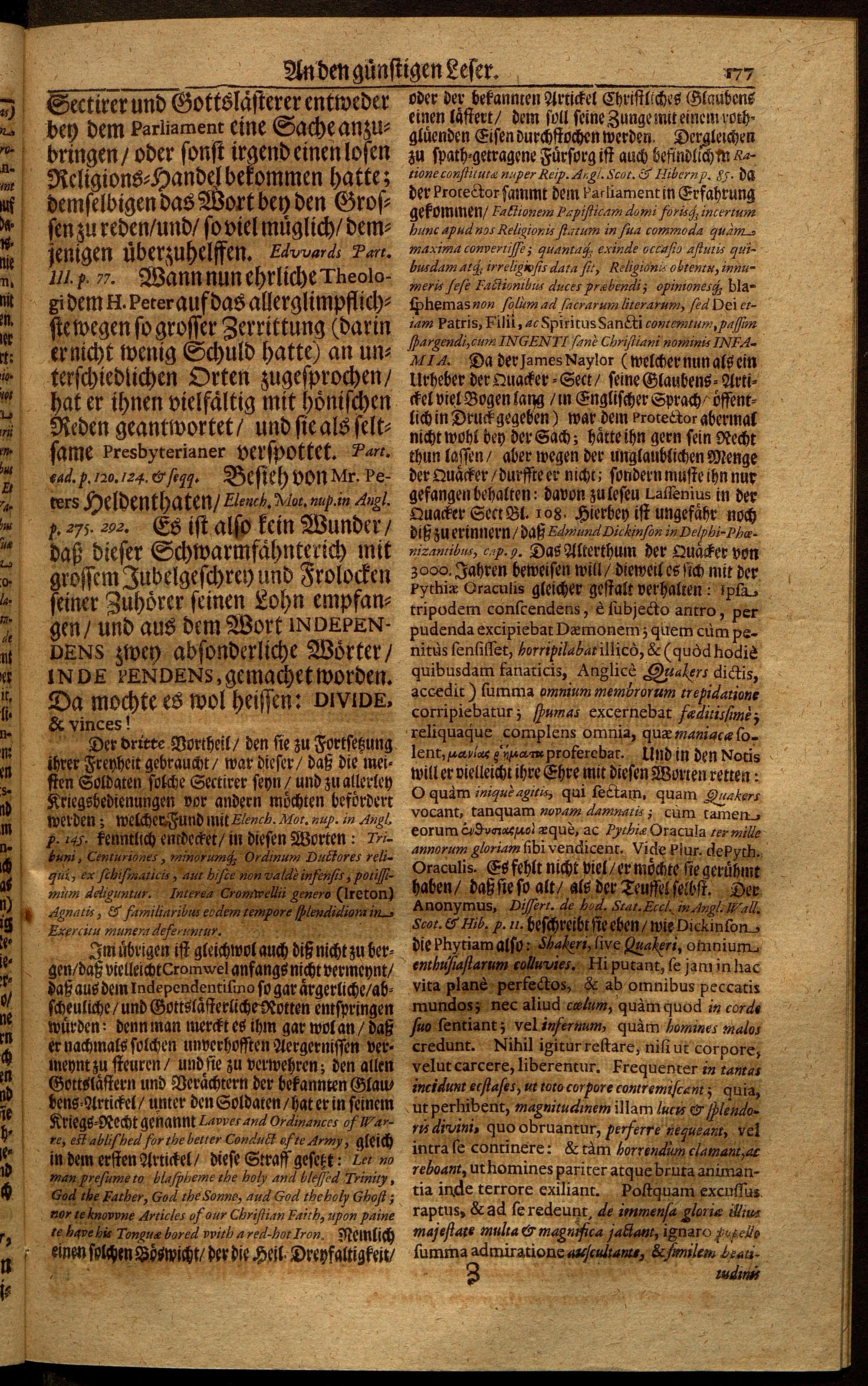 Alte und Neue Schwarm-Geister-Bruth, Und Quäcker-Greuel : Das ist Gründliche Vorstellung und Glaubwürdige Erzehlung Von denen Alten Quackern und Neuen Frey-Geistern / [Johann Christoph Corvinus]
