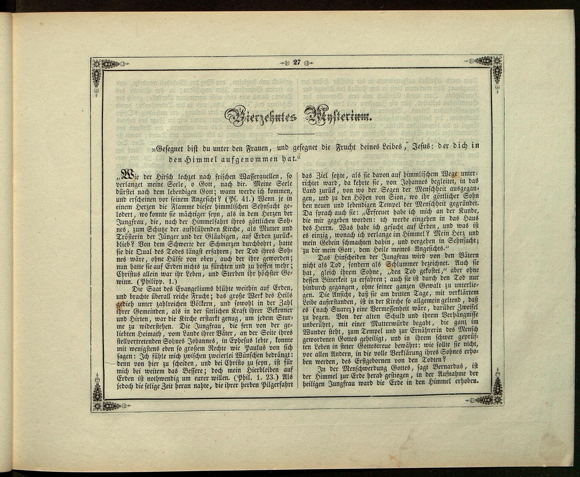 Die geistige Rose : enthaltend die fünfzehn Mysterien des Rosenkranzes in eben so vielen Federzeichnungen / von Joseph Führich. Lithogr. von J. Binder. Begl. mit einem erkl. Text von Joh. Em. Veith
