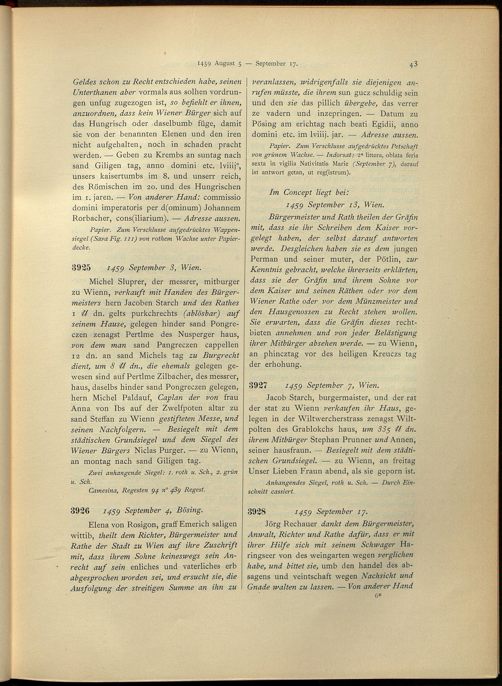 2,3 (1904) Verzeichnis der Originalurkunden des Städtischen Archives ; 1458 - 1493 / bearb. von Karl Uhlirz / hrsg. vom Verein für Geschichte der Stadt Wien (früher Altertums-Verein zu Wien)