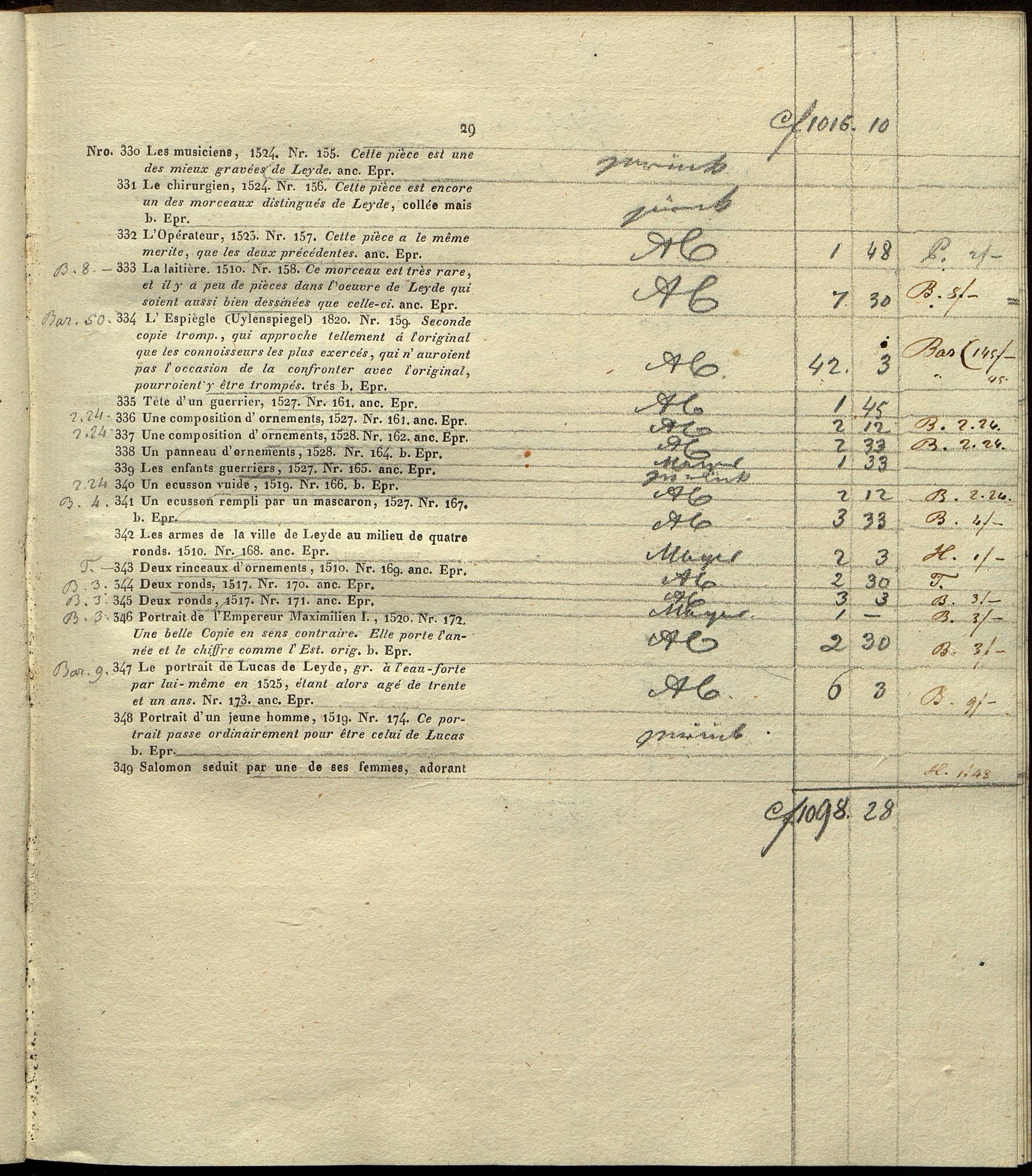 4 (1829) Catalogue d'une belle et nombreuse Collection d'Estampes, Oeuvres et Recueils, qui composaient le cabinet de Monsieur Michel Noble de Held ... dont la vente se fera a Vienne ... par Math. Artaria et Compagnie