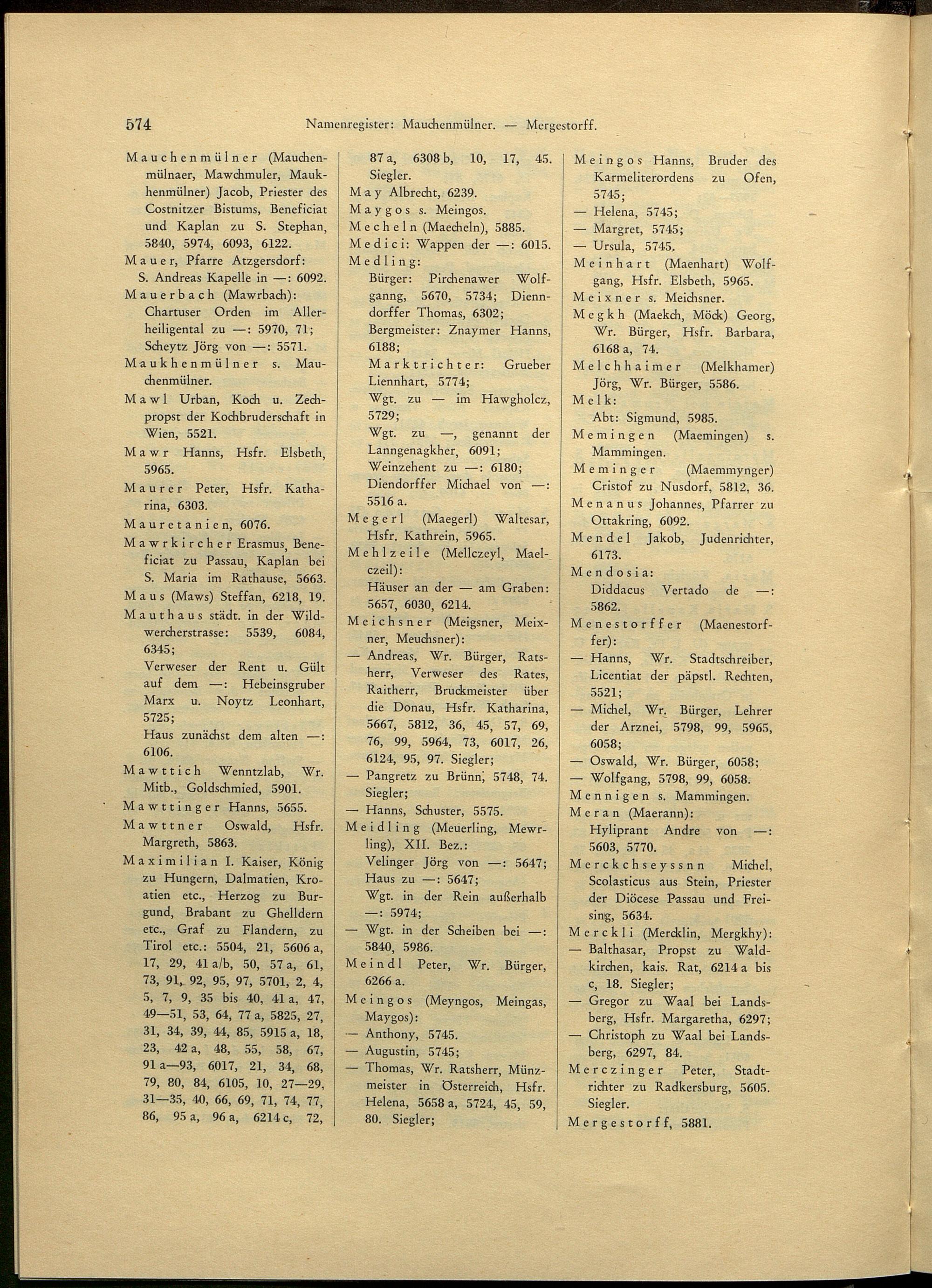 2,4,1,R (1936) Verzeichnis der Originalurkunden des Städtischen Hauptarchives 1494 - 1526. - 1. Halbbd. - Namen- und Sachregister / bearb. von Richard Mattis / hrsg. vom Verein für Geschichte der Stadt Wien (früher Altertums-Verein zu Wien)