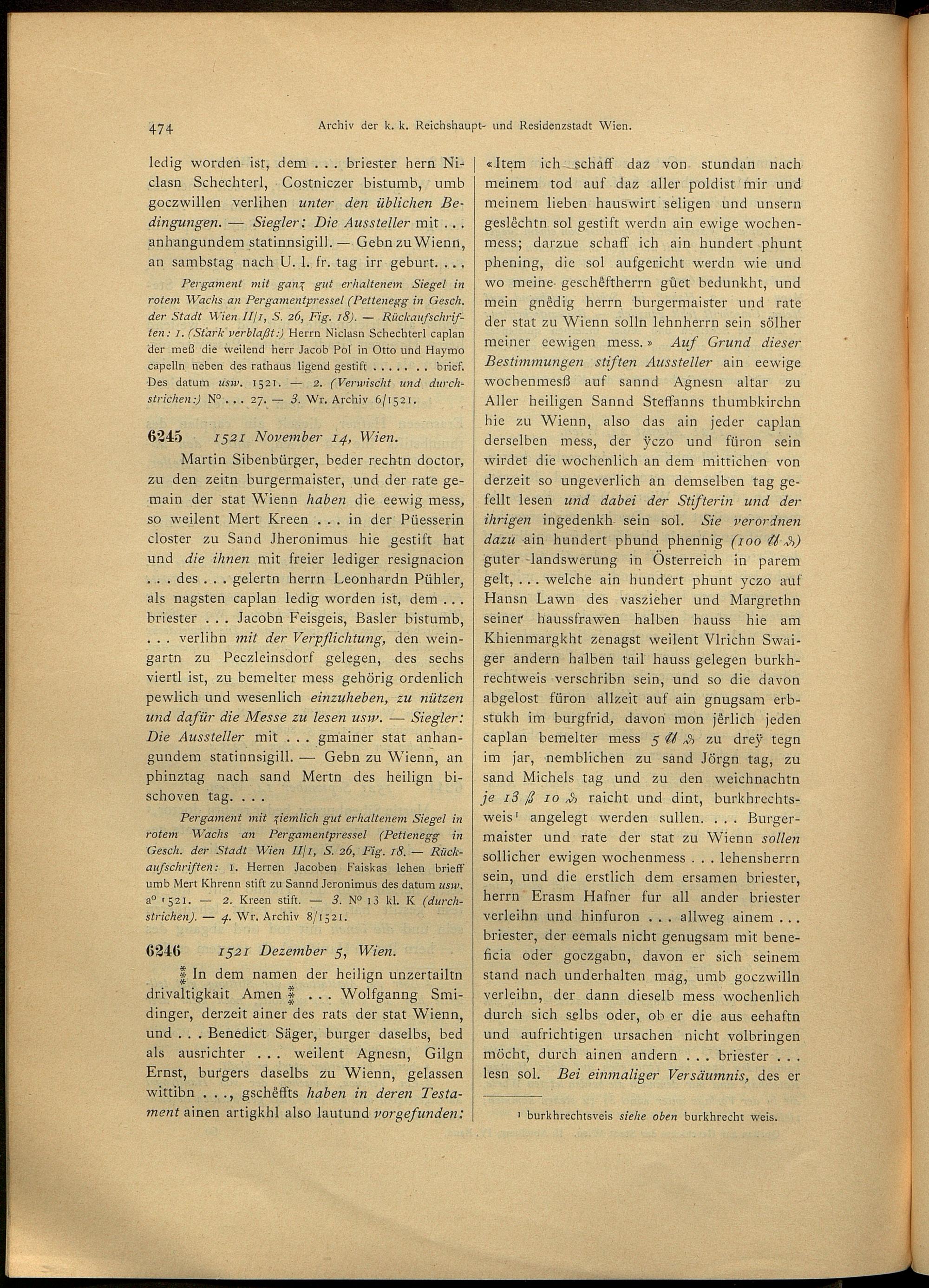 2,4,1 (1917) Verzeichnis der Originalurkunden des Städtischen Hauptarchives 1494 - 1526. - 1. Halbbd. / bearb. von Josef Lampel / hrsg. vom Verein für Geschichte der Stadt Wien (früher Altertums-Verein zu Wien)