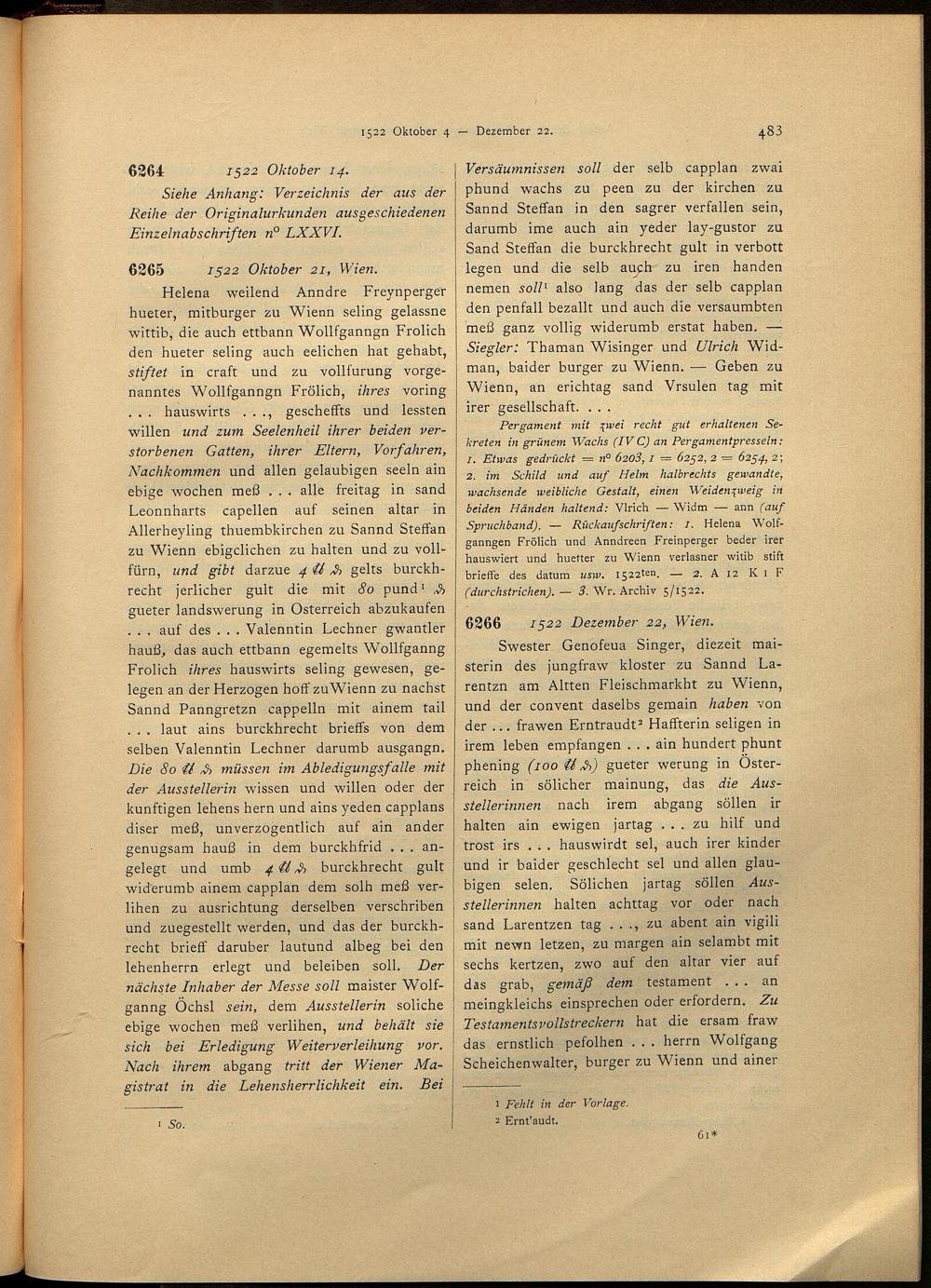 2,4,1 (1917) Verzeichnis der Originalurkunden des Städtischen Hauptarchives 1494 - 1526. - 1. Halbbd. / bearb. von Josef Lampel / hrsg. vom Verein für Geschichte der Stadt Wien (früher Altertums-Verein zu Wien)