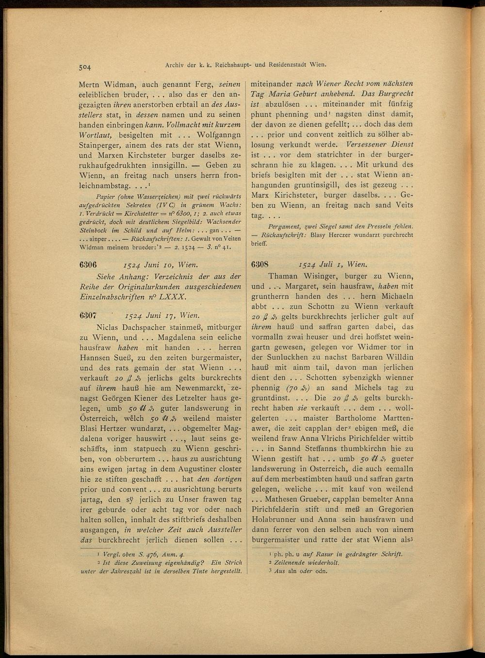 2,4,1 (1917) Verzeichnis der Originalurkunden des Städtischen Hauptarchives 1494 - 1526. - 1. Halbbd. / bearb. von Josef Lampel / hrsg. vom Verein für Geschichte der Stadt Wien (früher Altertums-Verein zu Wien)