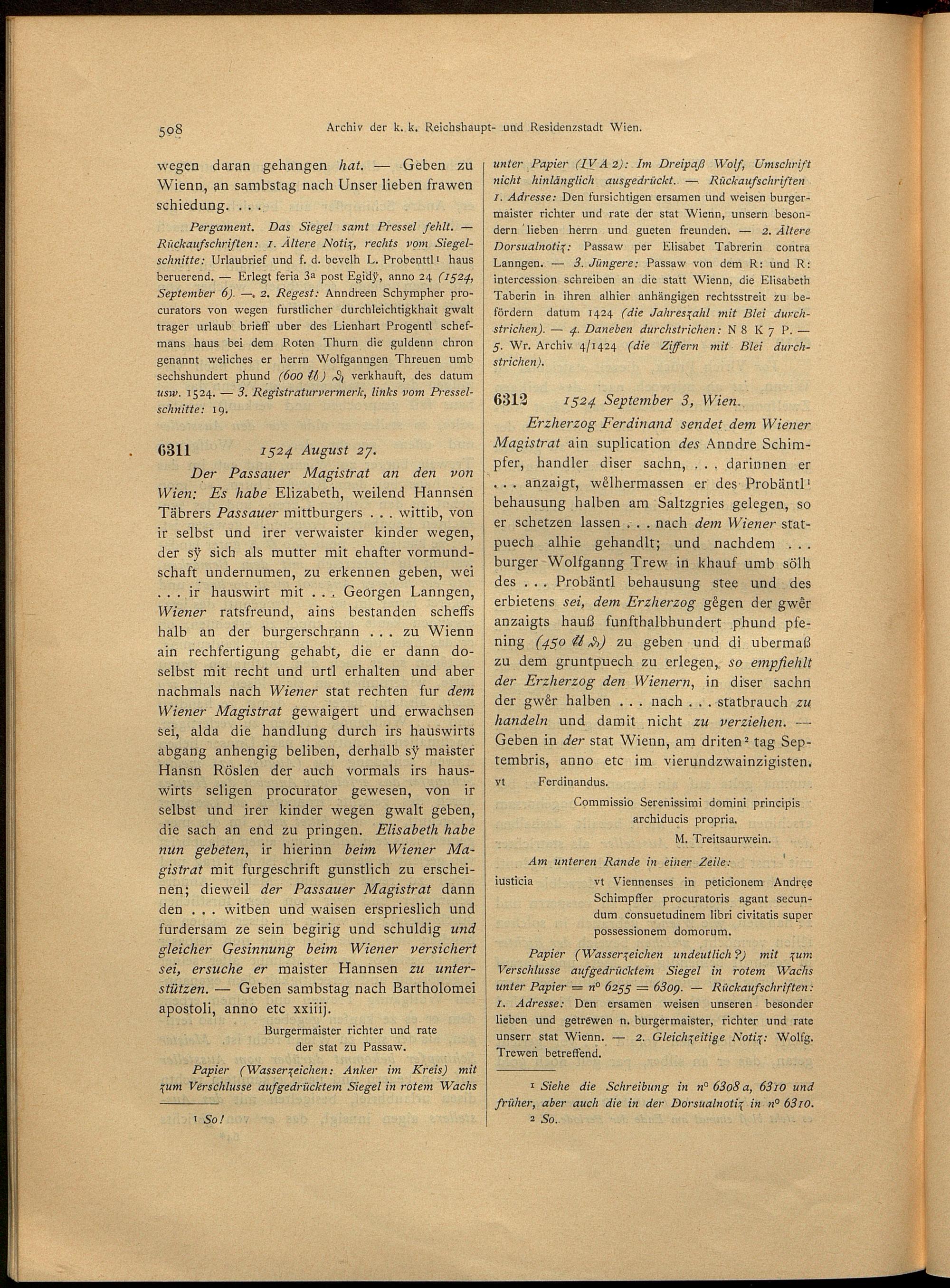 2,4,1 (1917) Verzeichnis der Originalurkunden des Städtischen Hauptarchives 1494 - 1526. - 1. Halbbd. / bearb. von Josef Lampel / hrsg. vom Verein für Geschichte der Stadt Wien (früher Altertums-Verein zu Wien)