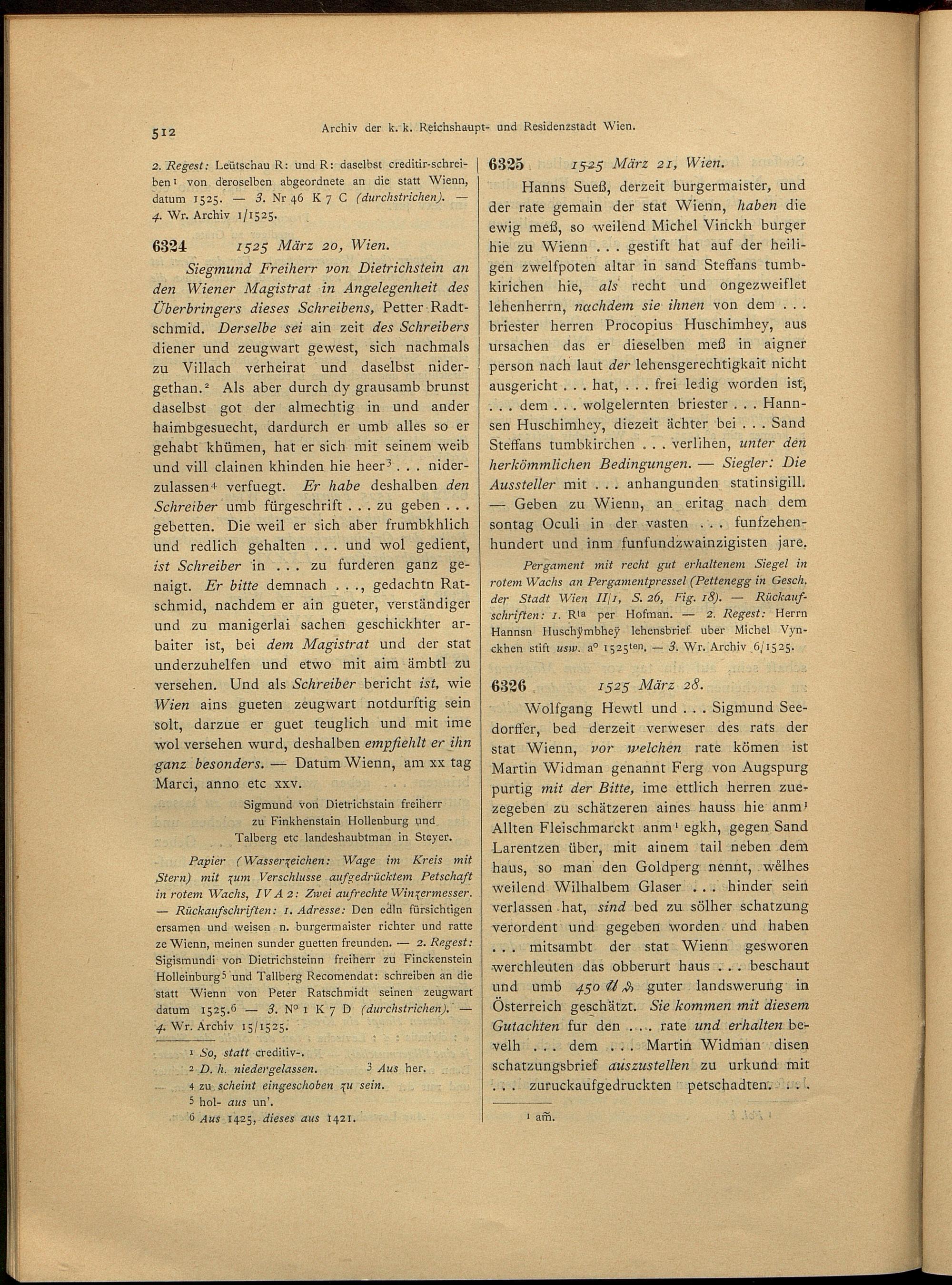2,4,1 (1917) Verzeichnis der Originalurkunden des Städtischen Hauptarchives 1494 - 1526. - 1. Halbbd. / bearb. von Josef Lampel / hrsg. vom Verein für Geschichte der Stadt Wien (früher Altertums-Verein zu Wien)