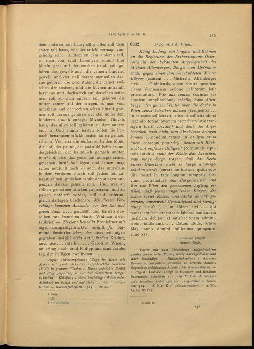 2,4,1 (1917) Verzeichnis der Originalurkunden des Städtischen Hauptarchives 1494 - 1526. - 1. Halbbd. / bearb. von Josef Lampel / hrsg. vom Verein für Geschichte der Stadt Wien (früher Altertums-Verein zu Wien)