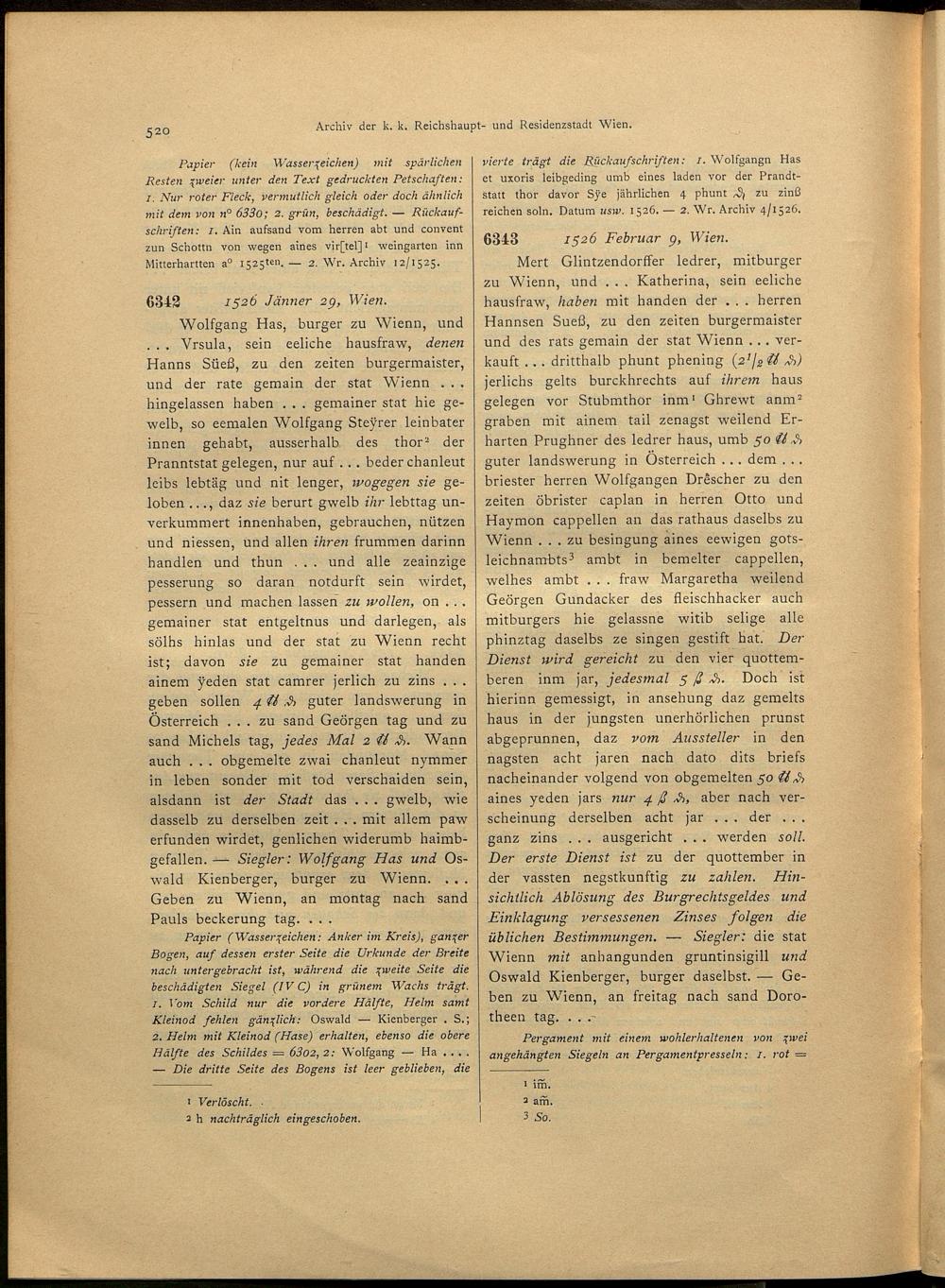 2,4,1 (1917) Verzeichnis der Originalurkunden des Städtischen Hauptarchives 1494 - 1526. - 1. Halbbd. / bearb. von Josef Lampel / hrsg. vom Verein für Geschichte der Stadt Wien (früher Altertums-Verein zu Wien)