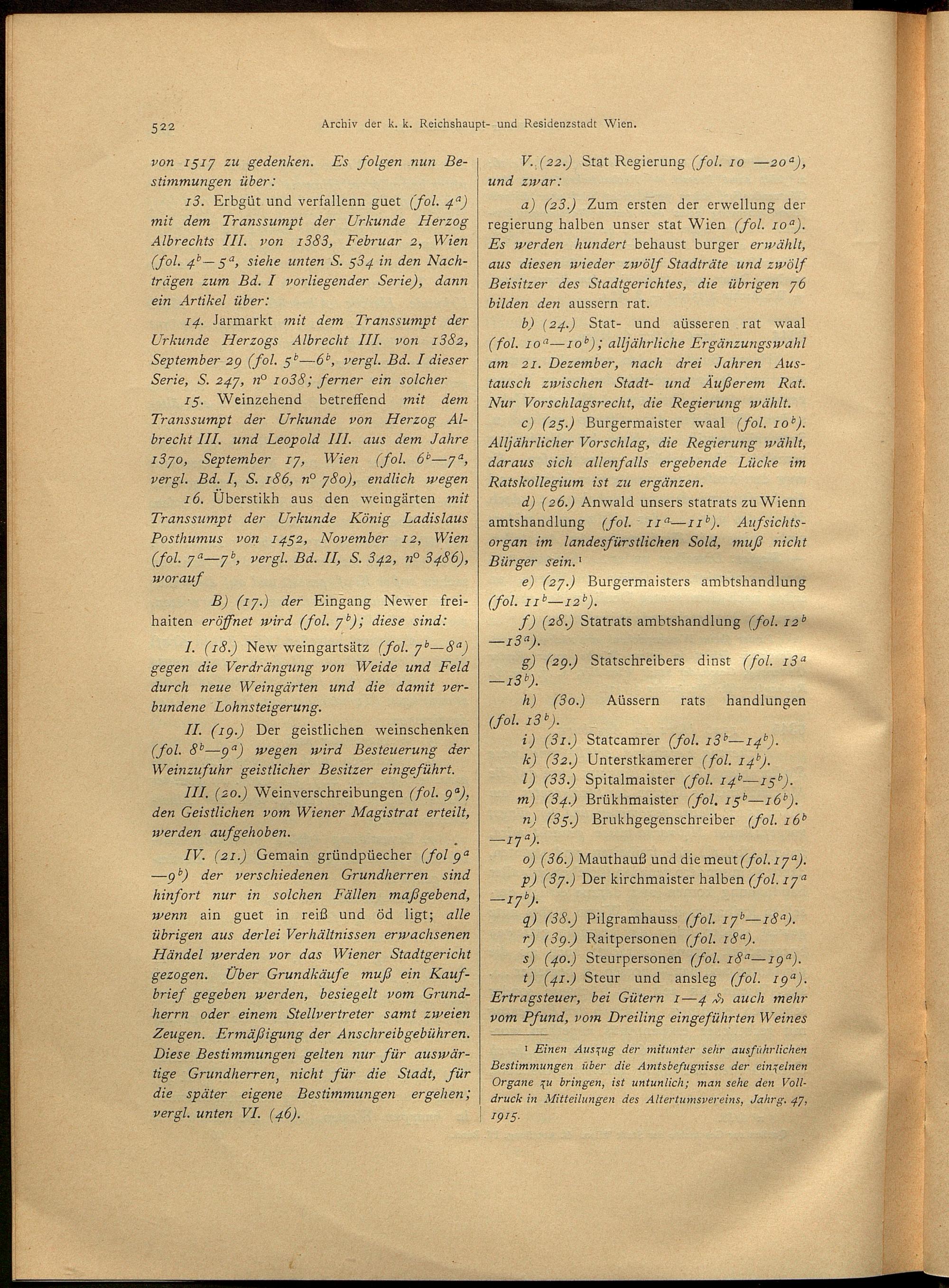 2,4,1 (1917) Verzeichnis der Originalurkunden des Städtischen Hauptarchives 1494 - 1526. - 1. Halbbd. / bearb. von Josef Lampel / hrsg. vom Verein für Geschichte der Stadt Wien (früher Altertums-Verein zu Wien)