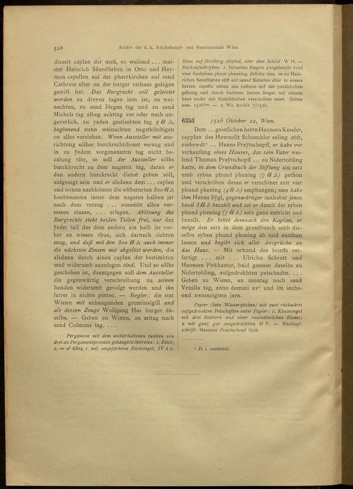 2,4,1 (1917) Verzeichnis der Originalurkunden des Städtischen Hauptarchives 1494 - 1526. - 1. Halbbd. / bearb. von Josef Lampel / hrsg. vom Verein für Geschichte der Stadt Wien (früher Altertums-Verein zu Wien)