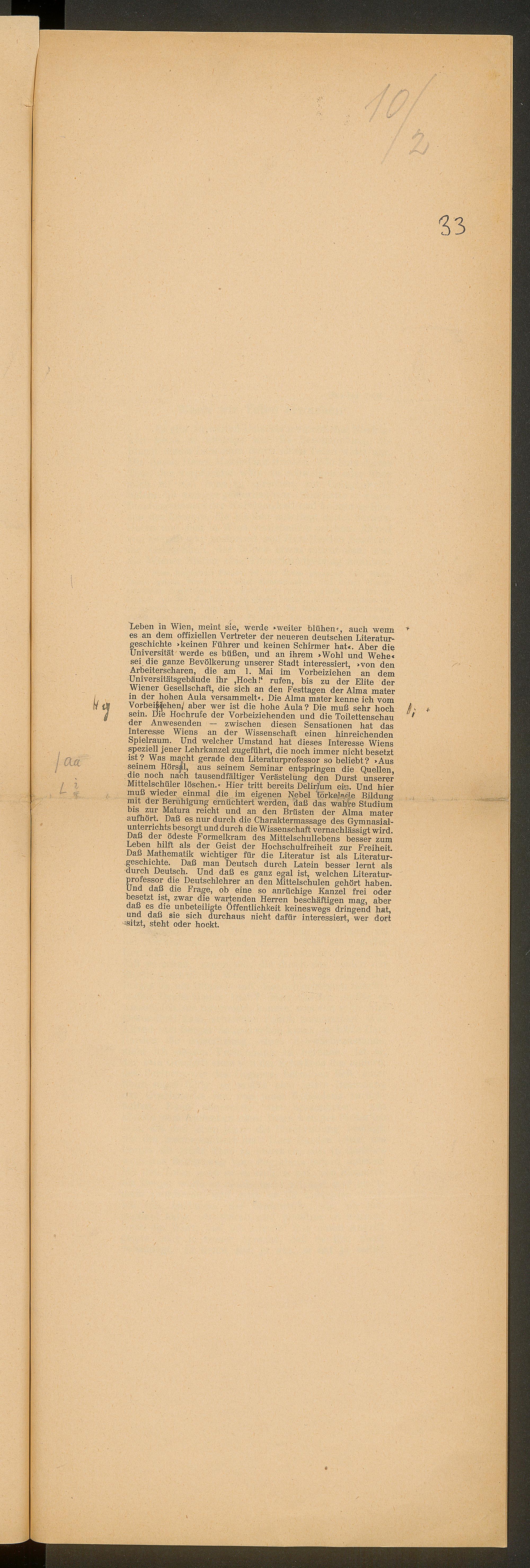 Korrekturfahnen zur ersten Redaktion der Aufsatzsammlung "Untergang der Welt durch schwarze Magie"