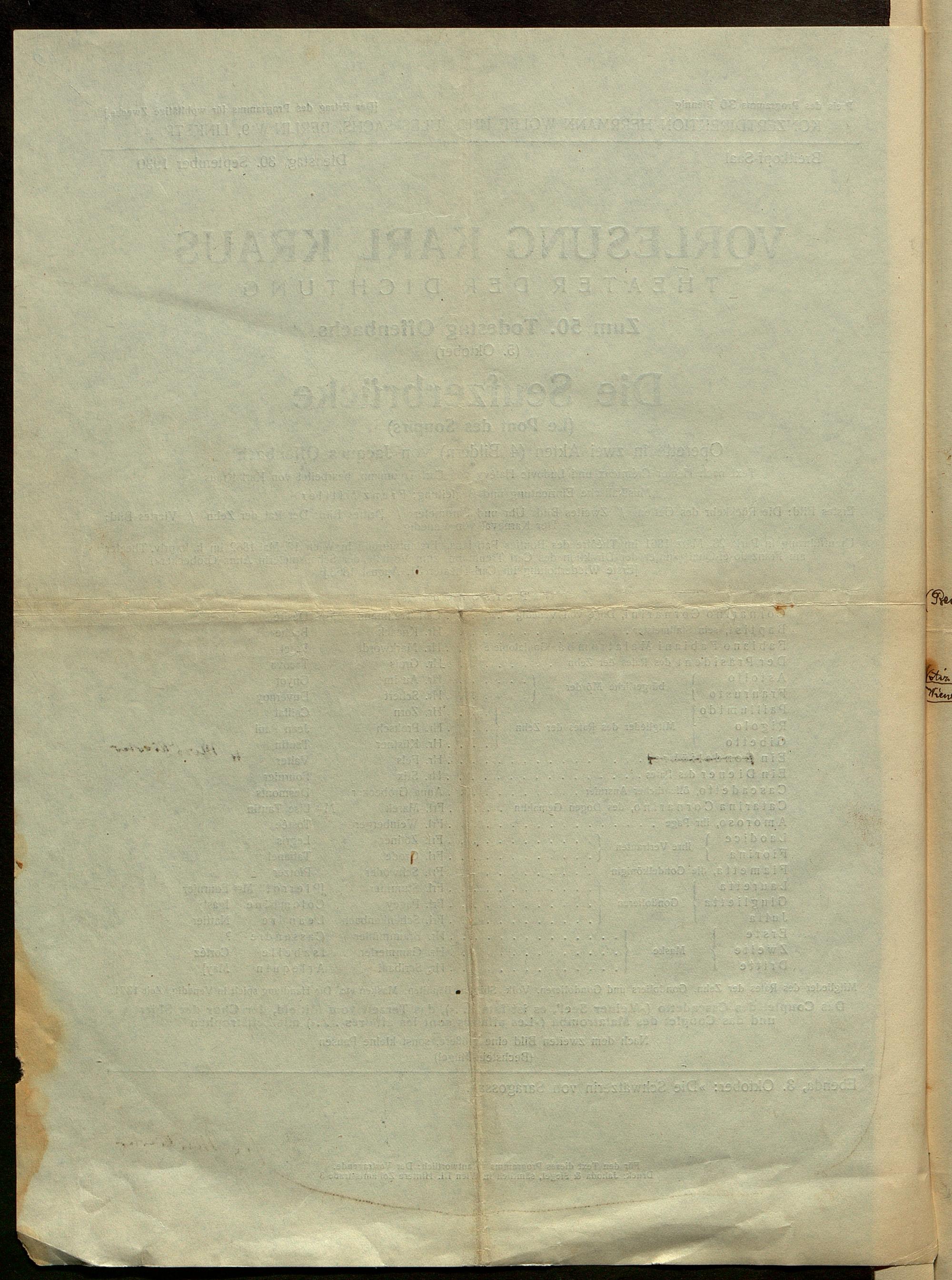 Manuskripte von Karl Kraus, Vorlesungsprogramme und Fotografien zur Fackel Nr. 845/846