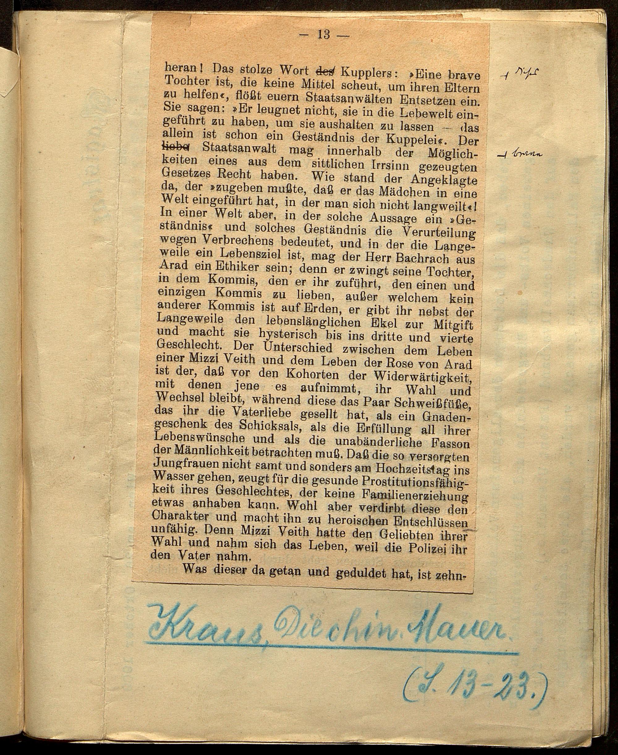 Korrekturfahnen der ersten Redaktion und Material zur ersten Auflage der Essay - Sammlung "Die chinesische Mauer"