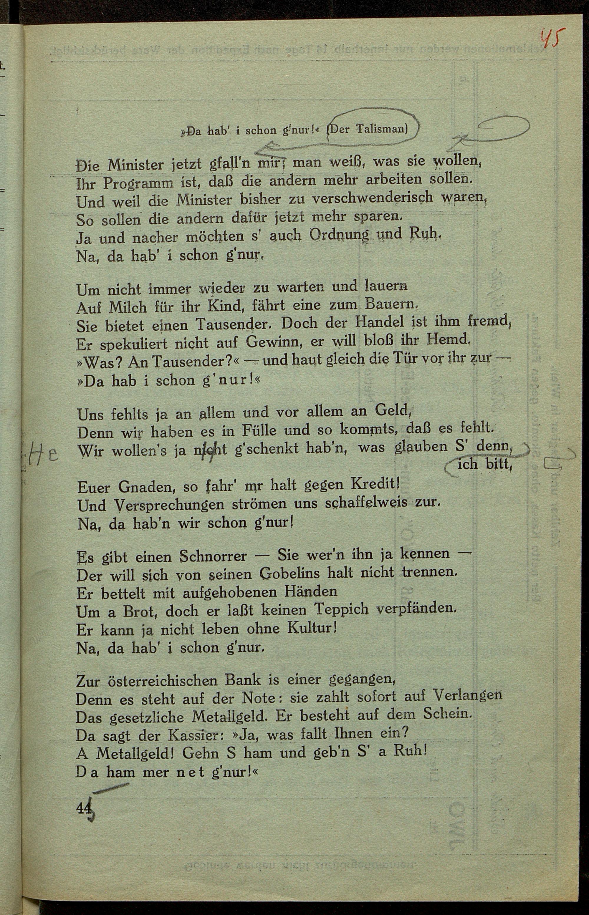 Korrekturbögen mit eh. Anmerkungen zu "Worte in Versen VI"