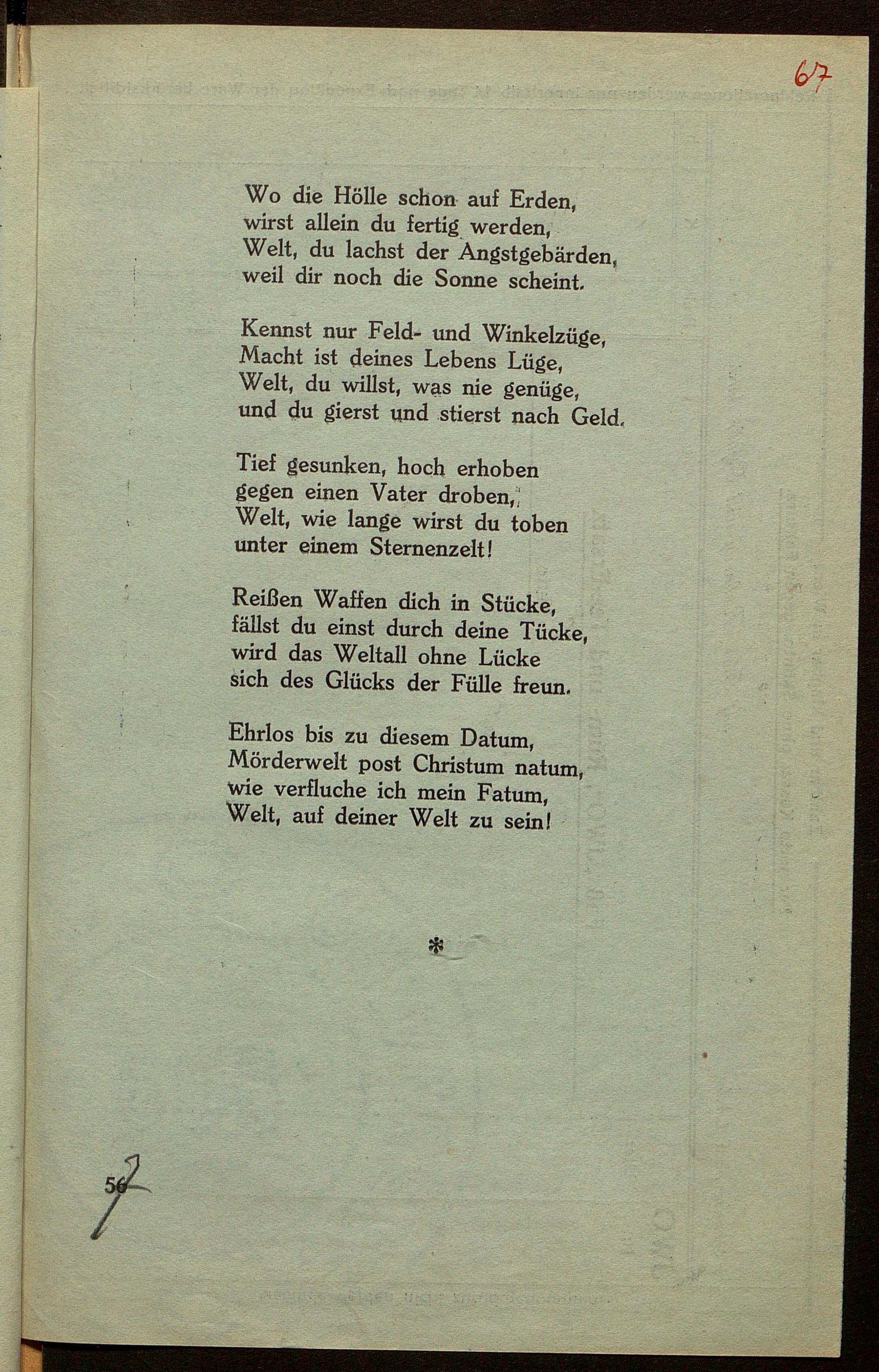 Korrekturbögen mit eh. Anmerkungen zu "Worte in Versen VI"