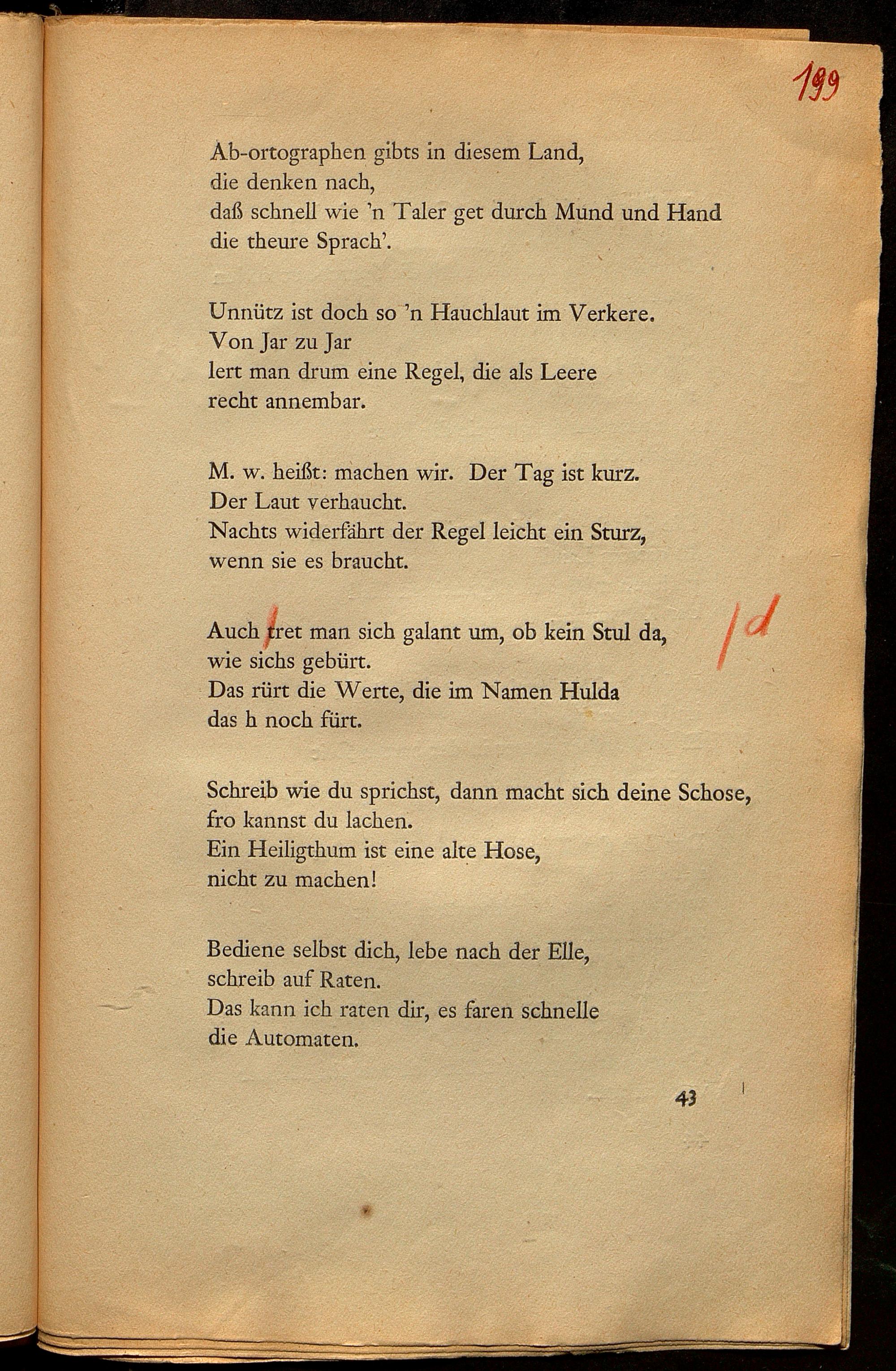 Korrekturbögen und eh. Manuskripte zu "Worte in Versen I"