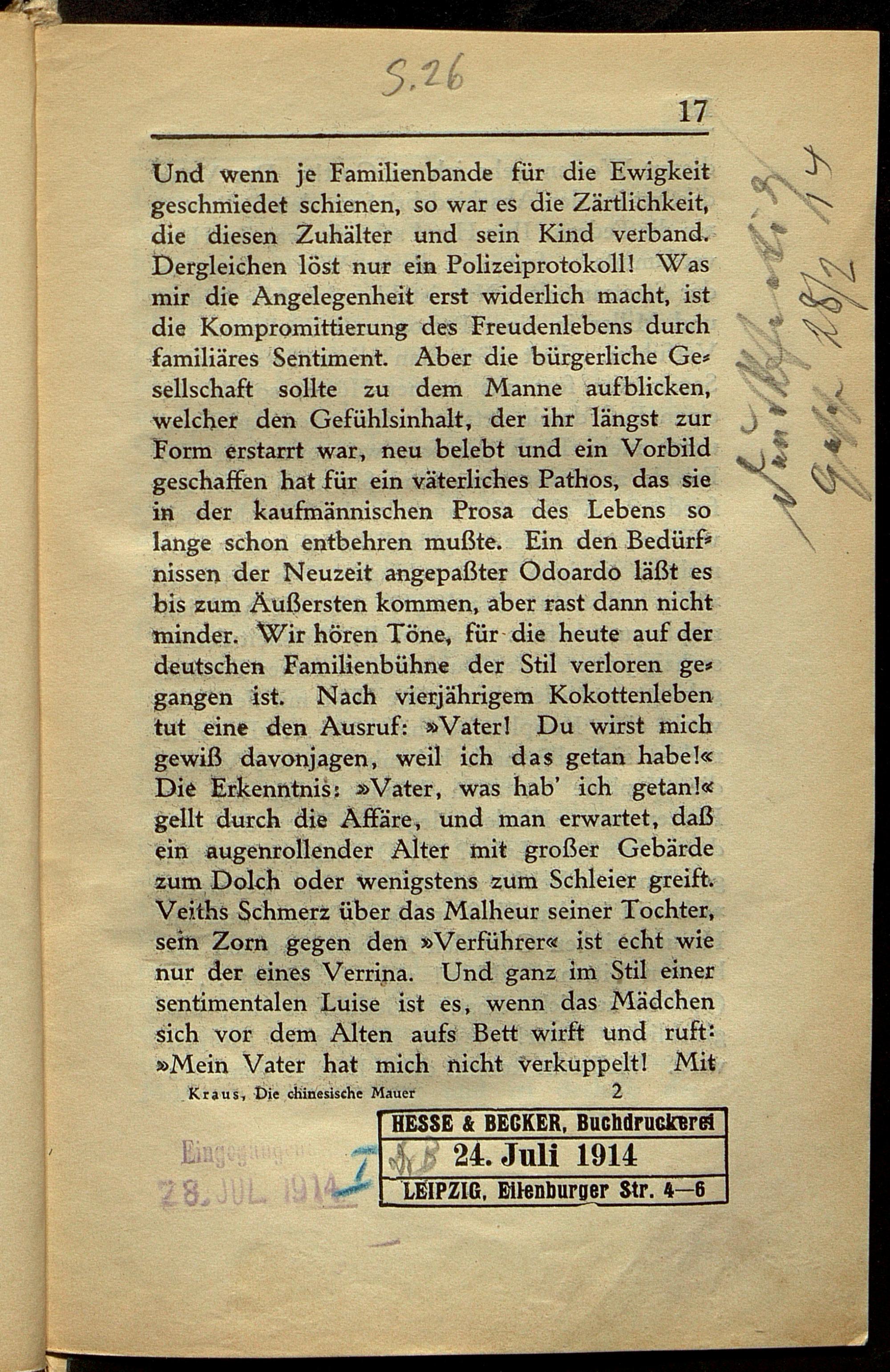 Korrekturbögen zur zweiten Ausgabe der Essay-Sammlung "Die chinesische Mauer"