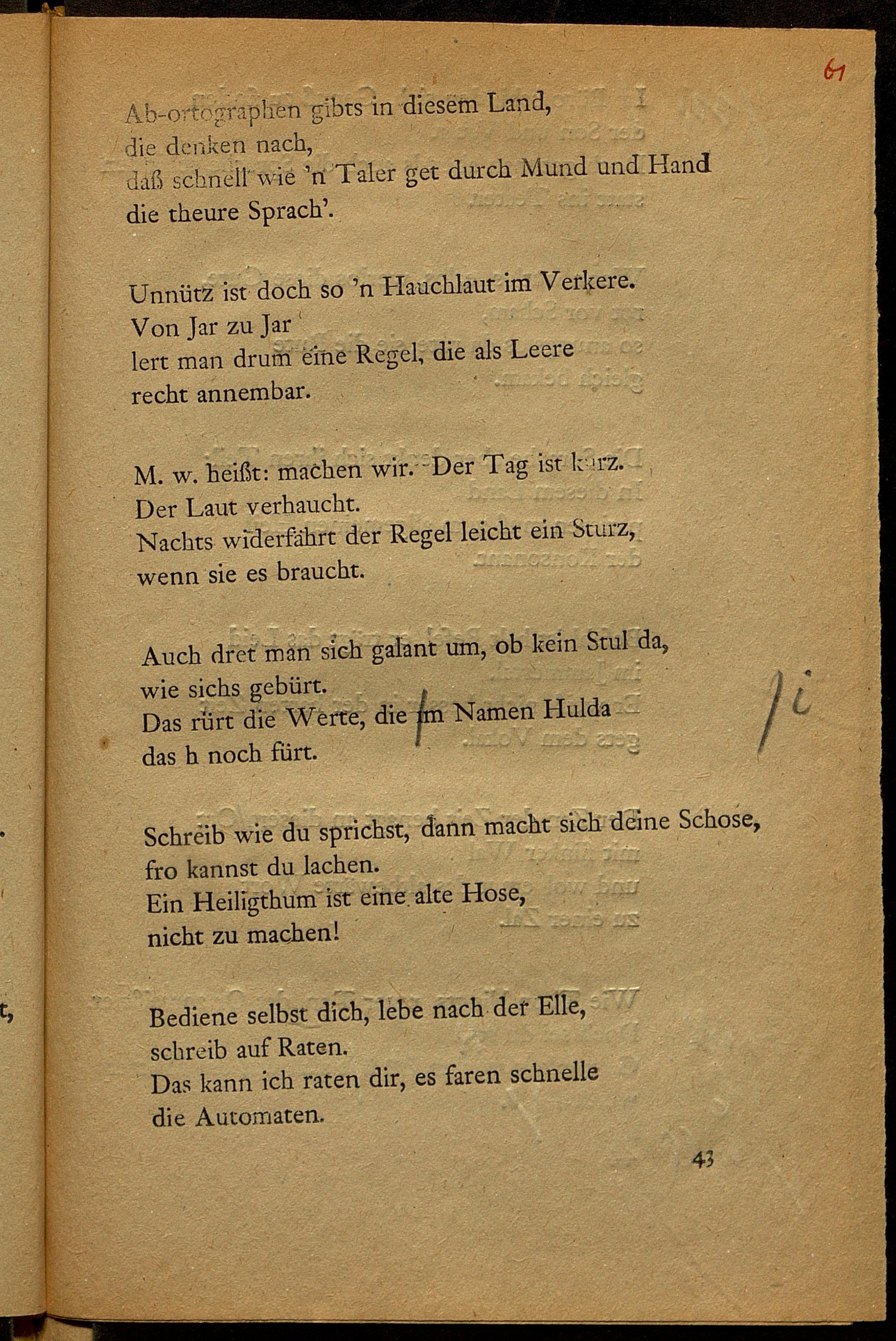 Korrekturbögen und Dokumente zu "Worte in Versen I"
