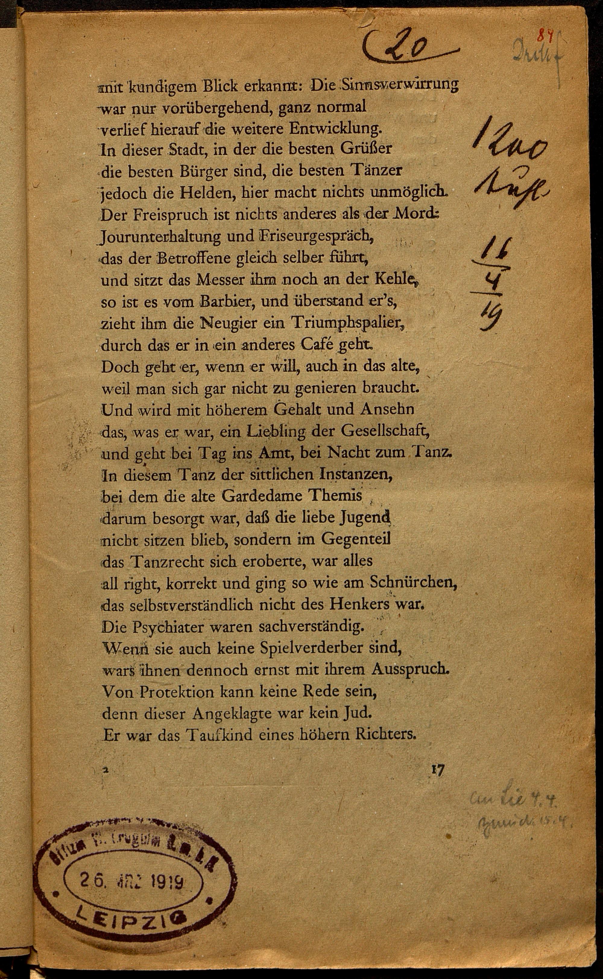 Korrekturbögen und Dokumente zu "Worte in Versen I"