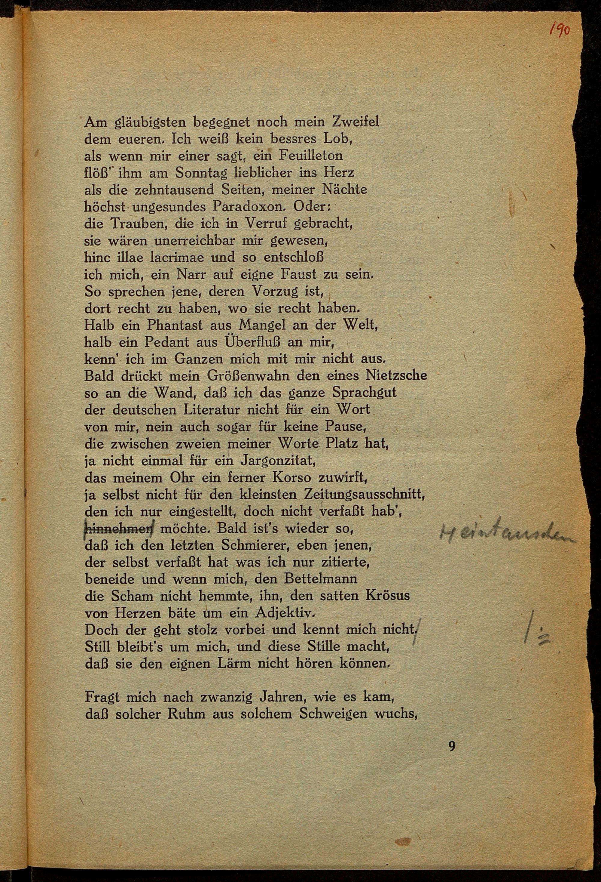 Korrekturbögen und Manuskripte zur 1. Auflage von "Worte in Versen V"