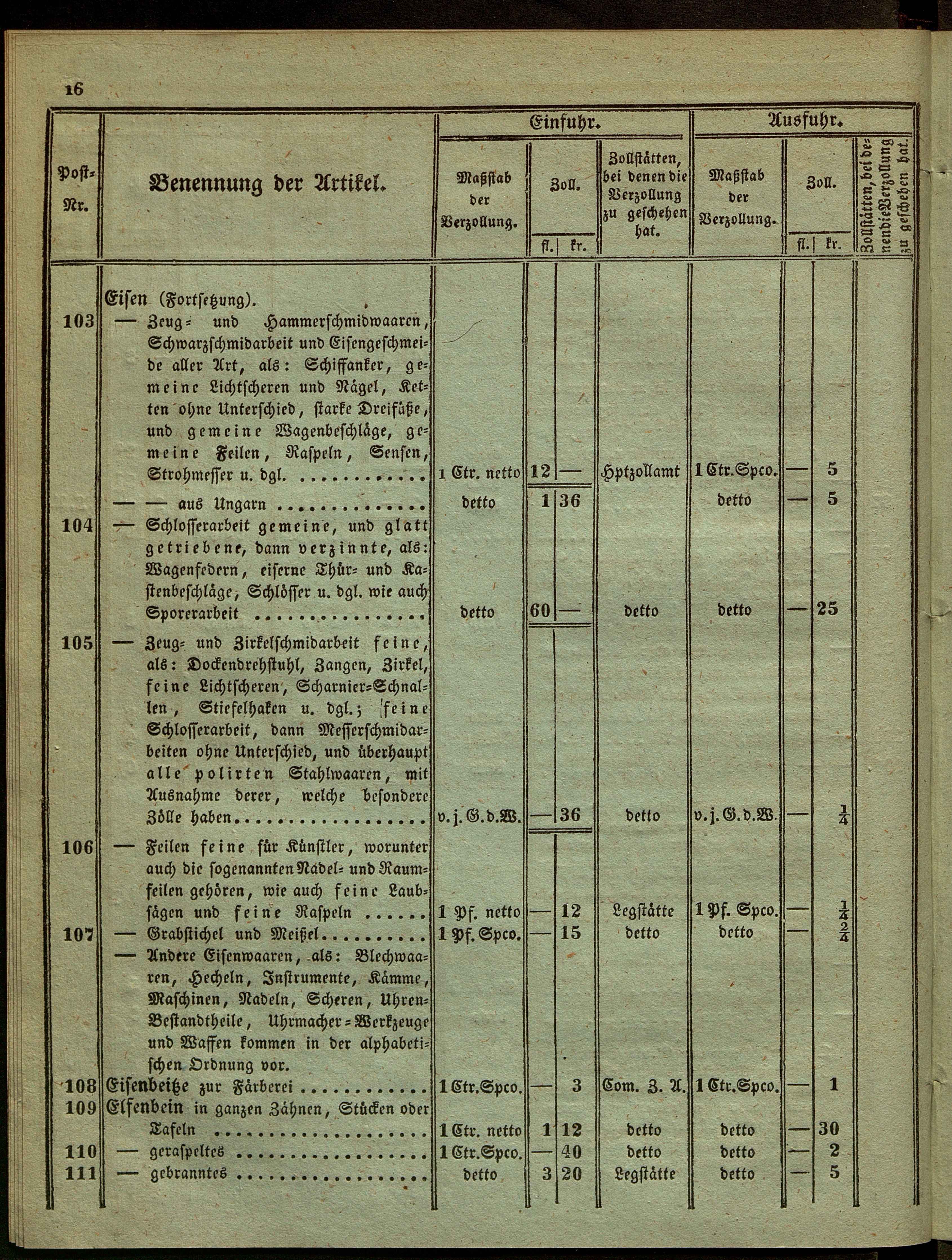 Zoll-Tariff für die Ein- und Ausfuhr der Waaren in dem österreichischen Kaiserstaate