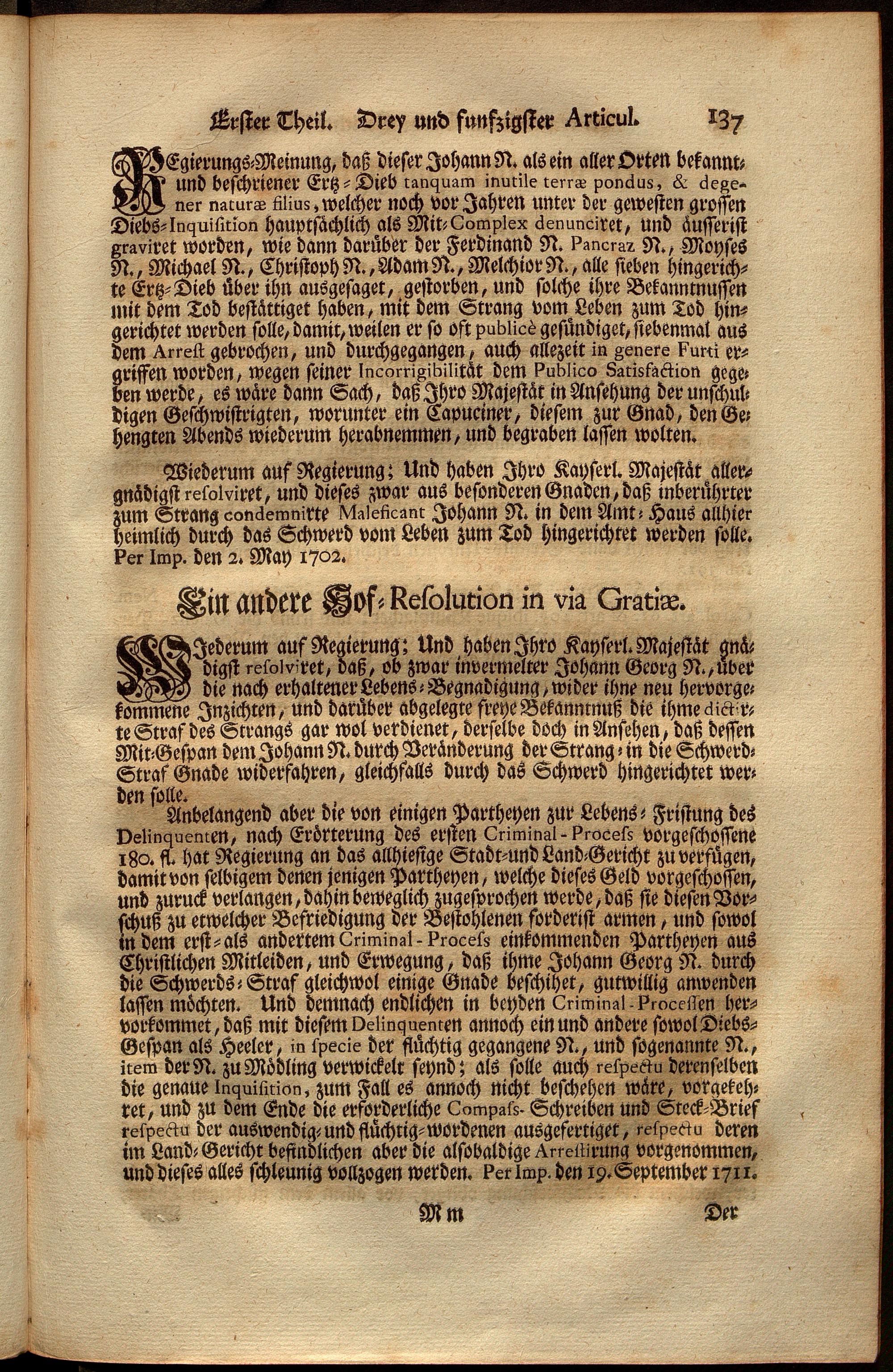 Uber Weiland Der Römisch-Kayserlichen, Auch Zu Hungarn, und Böheim u. Königl. Majestät Ferdinandi Des Dritten, Erz-Herzogens zu Oesterreich, Allerseligsten Andenckens, Peinliche Land-Gerichts-Ordnung In Oesterreich unter der Enns, : ersten und anderten Theil dienliche Anweisungen, und nutzliche Anmerckungen, wie auch alle hierüber weiters ergangene Hof-Resolutionen, Patenten, Generalien, und Novellen, dann verschiedene Praejudicien und Entscheidungen deren in Criminalibus vorfallenden zweifelhaften Fragen nach denen Articulen in der Ordnung eingetheilet und zusammen getragen... samt einem ausführlichen Register über alle hierinnen vorkommende Materien / Franz Joseph Bratsch, ...
