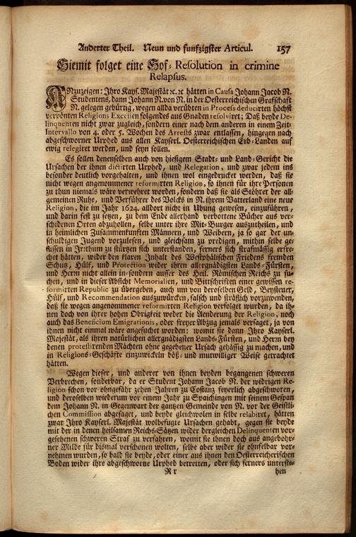 Uber Weiland Der Römisch-Kayserlichen, Auch Zu Hungarn, und Böheim u. Königl. Majestät Ferdinandi Des Dritten, Erz-Herzogens zu Oesterreich, Allerseligsten Andenckens, Peinliche Land-Gerichts-Ordnung In Oesterreich unter der Enns, : ersten und anderten Theil dienliche Anweisungen, und nutzliche Anmerckungen, wie auch alle hierüber weiters ergangene Hof-Resolutionen, Patenten, Generalien, und Novellen, dann verschiedene Praejudicien und Entscheidungen deren in Criminalibus vorfallenden zweifelhaften Fragen nach denen Articulen in der Ordnung eingetheilet und zusammen getragen... samt einem ausführlichen Register über alle hierinnen vorkommende Materien / Franz Joseph Bratsch, ...