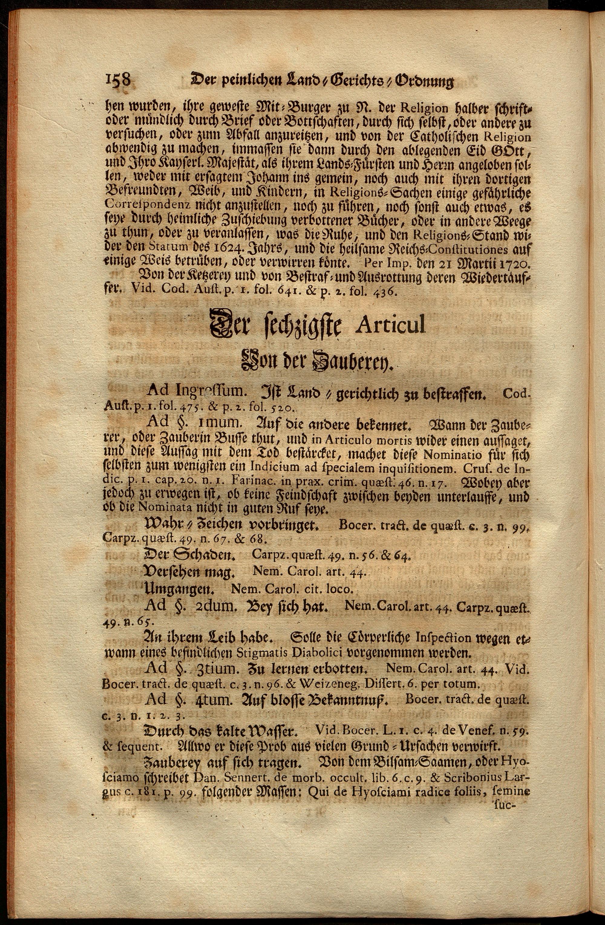 Uber Weiland Der Römisch-Kayserlichen, Auch Zu Hungarn, und Böheim u. Königl. Majestät Ferdinandi Des Dritten, Erz-Herzogens zu Oesterreich, Allerseligsten Andenckens, Peinliche Land-Gerichts-Ordnung In Oesterreich unter der Enns, : ersten und anderten Theil dienliche Anweisungen, und nutzliche Anmerckungen, wie auch alle hierüber weiters ergangene Hof-Resolutionen, Patenten, Generalien, und Novellen, dann verschiedene Praejudicien und Entscheidungen deren in Criminalibus vorfallenden zweifelhaften Fragen nach denen Articulen in der Ordnung eingetheilet und zusammen getragen... samt einem ausführlichen Register über alle hierinnen vorkommende Materien / Franz Joseph Bratsch, ...