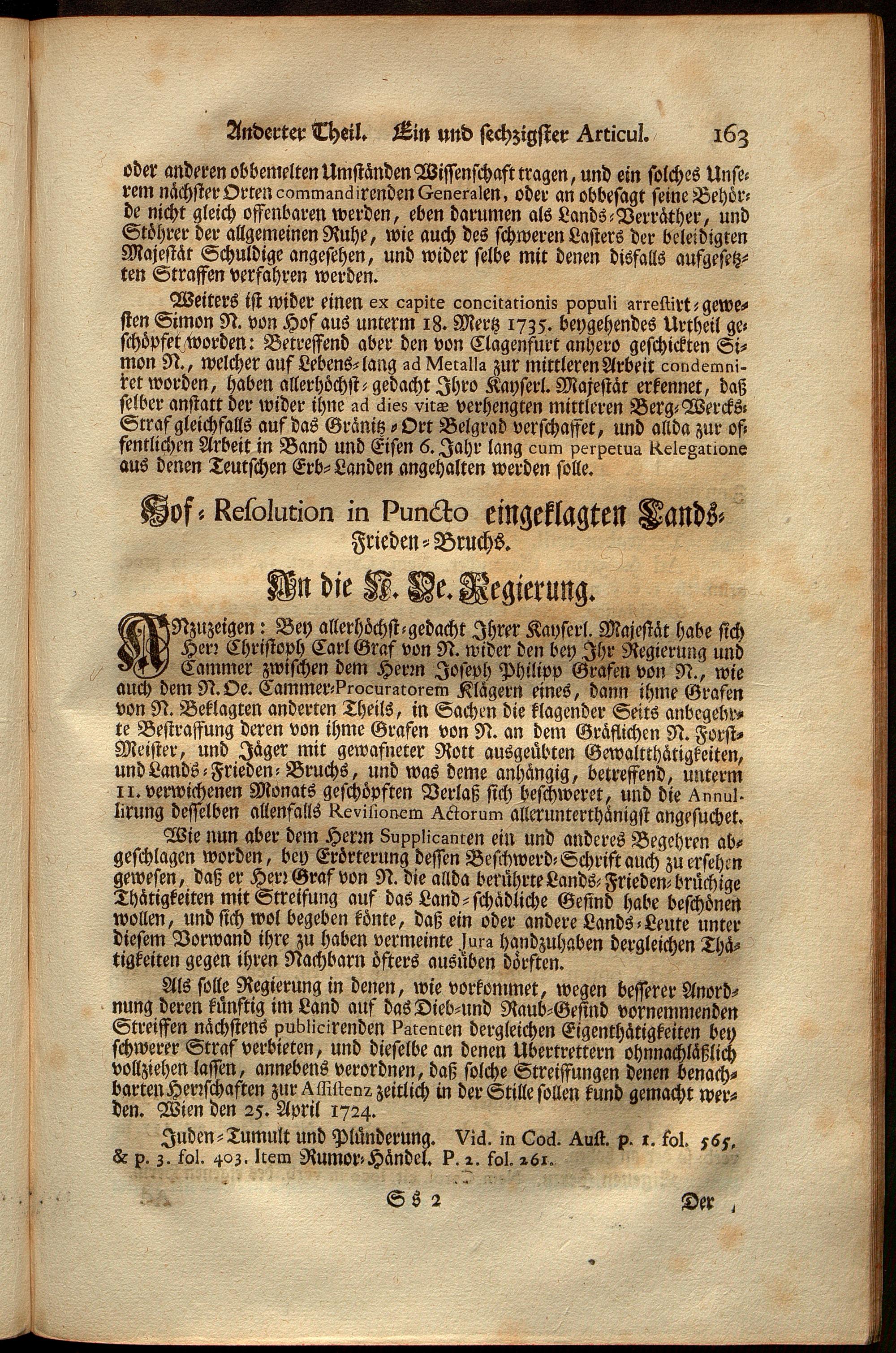 Uber Weiland Der Römisch-Kayserlichen, Auch Zu Hungarn, und Böheim u. Königl. Majestät Ferdinandi Des Dritten, Erz-Herzogens zu Oesterreich, Allerseligsten Andenckens, Peinliche Land-Gerichts-Ordnung In Oesterreich unter der Enns, : ersten und anderten Theil dienliche Anweisungen, und nutzliche Anmerckungen, wie auch alle hierüber weiters ergangene Hof-Resolutionen, Patenten, Generalien, und Novellen, dann verschiedene Praejudicien und Entscheidungen deren in Criminalibus vorfallenden zweifelhaften Fragen nach denen Articulen in der Ordnung eingetheilet und zusammen getragen... samt einem ausführlichen Register über alle hierinnen vorkommende Materien / Franz Joseph Bratsch, ...