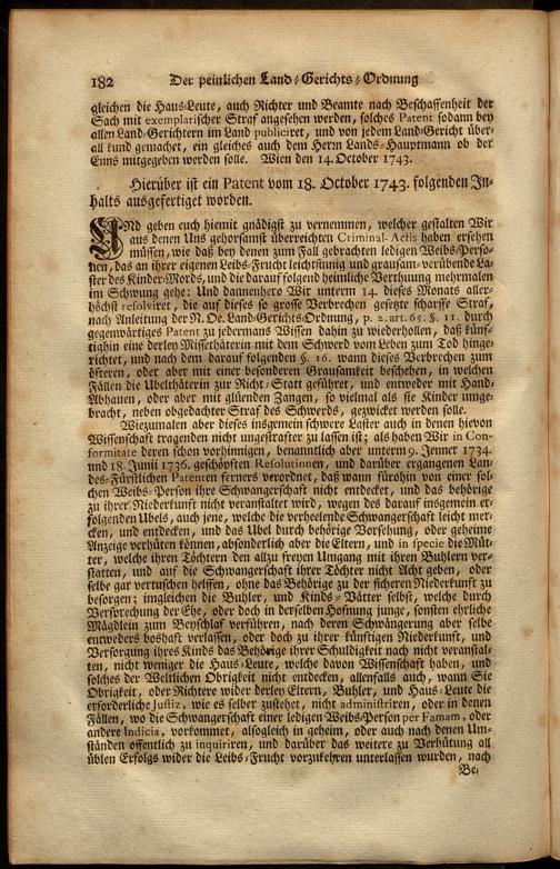 Uber Weiland Der Römisch-Kayserlichen, Auch Zu Hungarn, und Böheim u. Königl. Majestät Ferdinandi Des Dritten, Erz-Herzogens zu Oesterreich, Allerseligsten Andenckens, Peinliche Land-Gerichts-Ordnung In Oesterreich unter der Enns, : ersten und anderten Theil dienliche Anweisungen, und nutzliche Anmerckungen, wie auch alle hierüber weiters ergangene Hof-Resolutionen, Patenten, Generalien, und Novellen, dann verschiedene Praejudicien und Entscheidungen deren in Criminalibus vorfallenden zweifelhaften Fragen nach denen Articulen in der Ordnung eingetheilet und zusammen getragen... samt einem ausführlichen Register über alle hierinnen vorkommende Materien / Franz Joseph Bratsch, ...