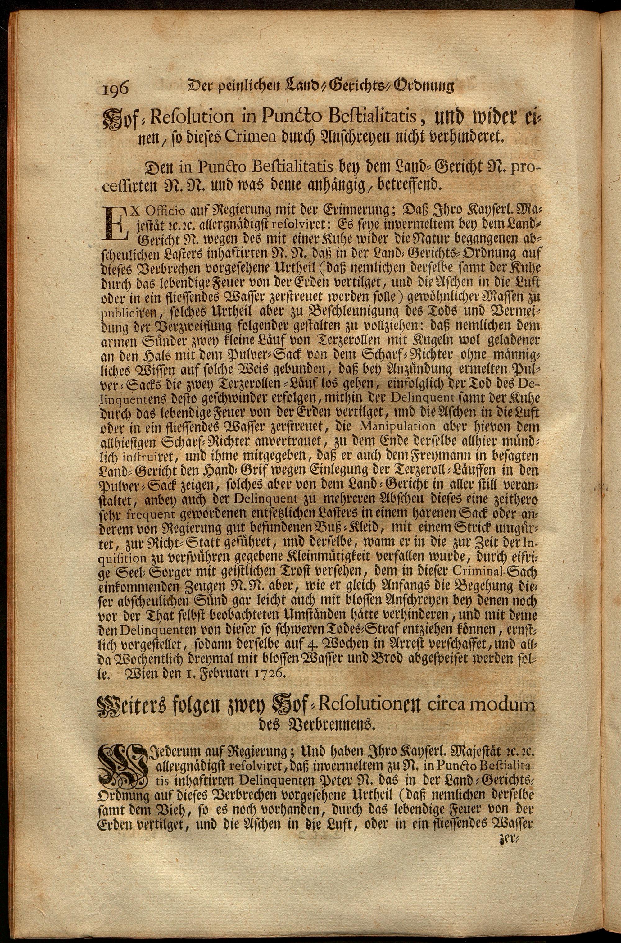 Uber Weiland Der Römisch-Kayserlichen, Auch Zu Hungarn, und Böheim u. Königl. Majestät Ferdinandi Des Dritten, Erz-Herzogens zu Oesterreich, Allerseligsten Andenckens, Peinliche Land-Gerichts-Ordnung In Oesterreich unter der Enns, : ersten und anderten Theil dienliche Anweisungen, und nutzliche Anmerckungen, wie auch alle hierüber weiters ergangene Hof-Resolutionen, Patenten, Generalien, und Novellen, dann verschiedene Praejudicien und Entscheidungen deren in Criminalibus vorfallenden zweifelhaften Fragen nach denen Articulen in der Ordnung eingetheilet und zusammen getragen... samt einem ausführlichen Register über alle hierinnen vorkommende Materien / Franz Joseph Bratsch, ...