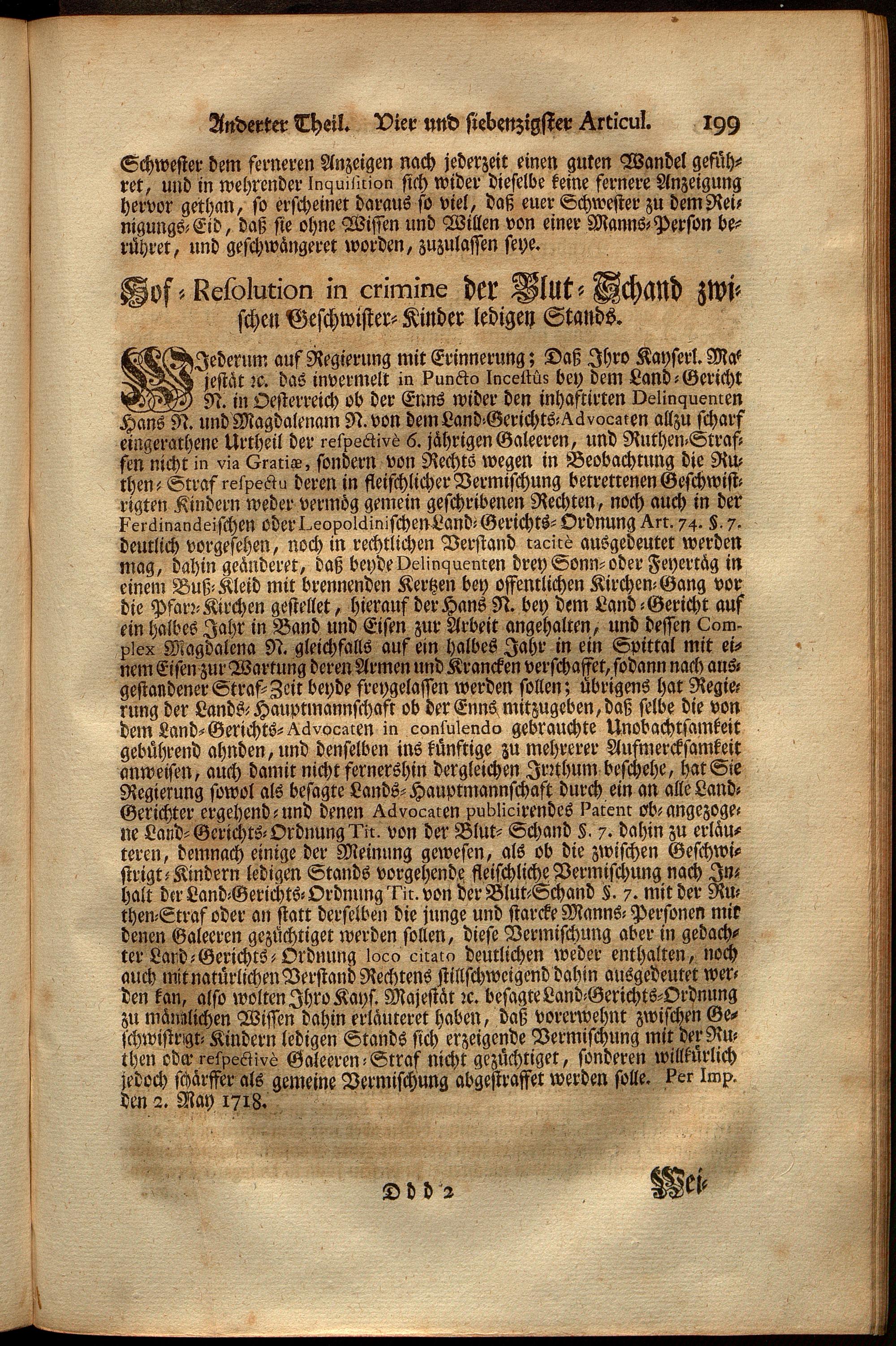 Uber Weiland Der Römisch-Kayserlichen, Auch Zu Hungarn, und Böheim u. Königl. Majestät Ferdinandi Des Dritten, Erz-Herzogens zu Oesterreich, Allerseligsten Andenckens, Peinliche Land-Gerichts-Ordnung In Oesterreich unter der Enns, : ersten und anderten Theil dienliche Anweisungen, und nutzliche Anmerckungen, wie auch alle hierüber weiters ergangene Hof-Resolutionen, Patenten, Generalien, und Novellen, dann verschiedene Praejudicien und Entscheidungen deren in Criminalibus vorfallenden zweifelhaften Fragen nach denen Articulen in der Ordnung eingetheilet und zusammen getragen... samt einem ausführlichen Register über alle hierinnen vorkommende Materien / Franz Joseph Bratsch, ...