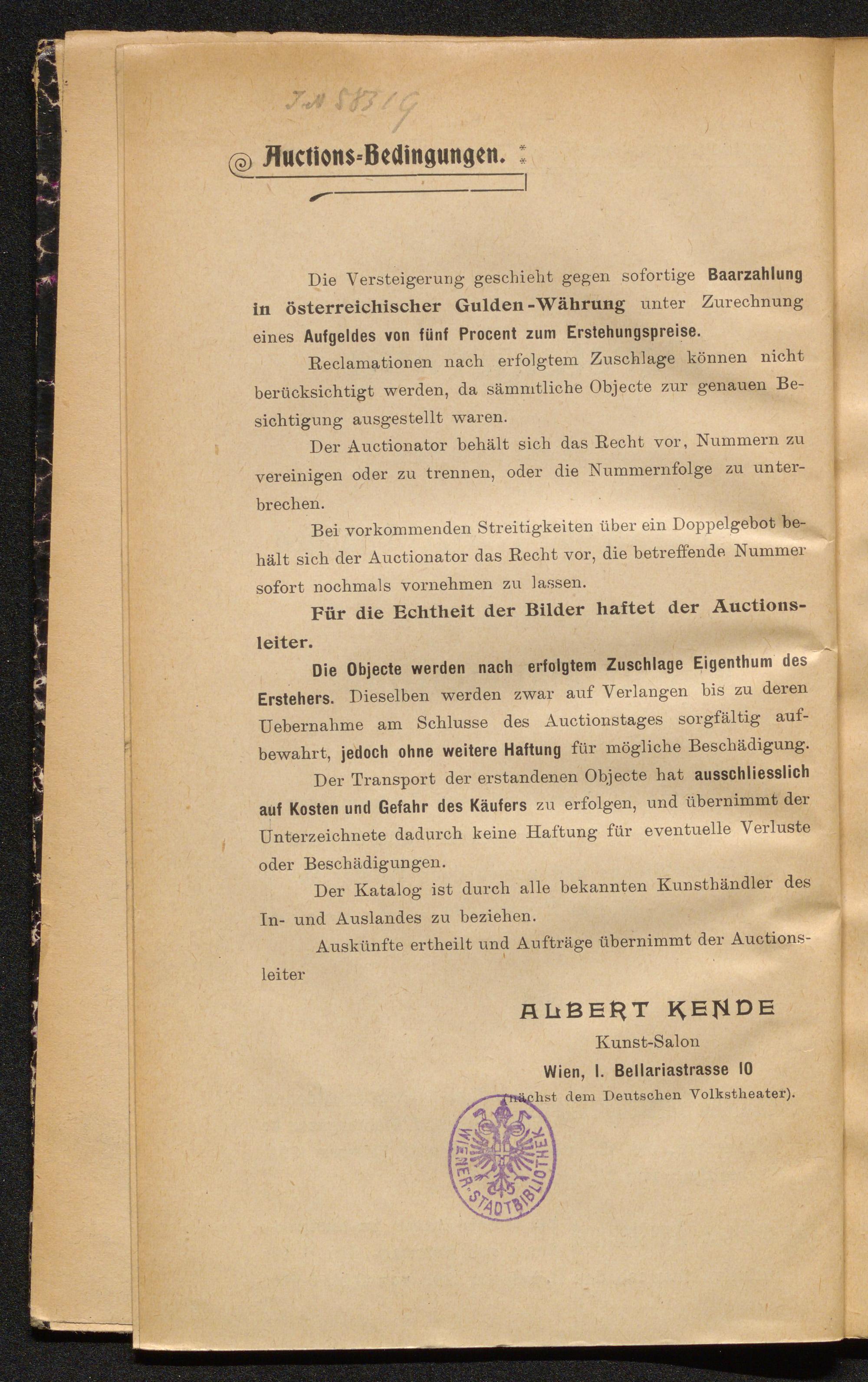 Versteigerung einer reichhaltigen Collection von Oelgemälden und Federzeichnungen des Wiener akademischen Malers Rudolf Hausleithner : ferner einer wertvollen Sammlung von Oelgemälden und Aquarellen hervorragender älterer und moderner Wiener und auswärtiger Meister aus Wiener Privatbesitz / Albert Kende
