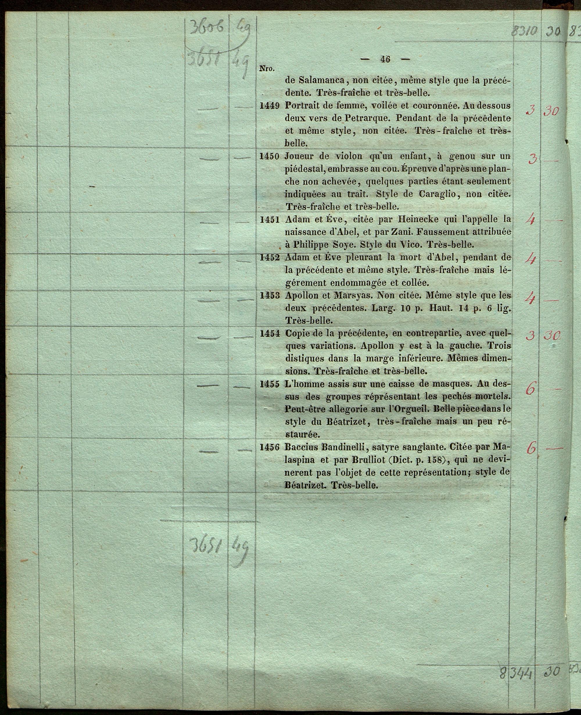 Catalogue de la riche collection d'estampes du premier siècle de l'art en Italie et en Allemagne, des jeux de cartes à Tarots et du précieux cabinet de nielles en planches originales de feu Mr. le Comte Léopold Cicognara, ... : La vente publique de cette Collection aura lieu à Vienne en Autriche sous la direction de Mess.rs Artaria & Comp. le 4. Novembre 1839 et jours suivants, à 3 heures précises de l'après-midi, dans leur Salle des ventes, rue Kohlmarkt N. 1149