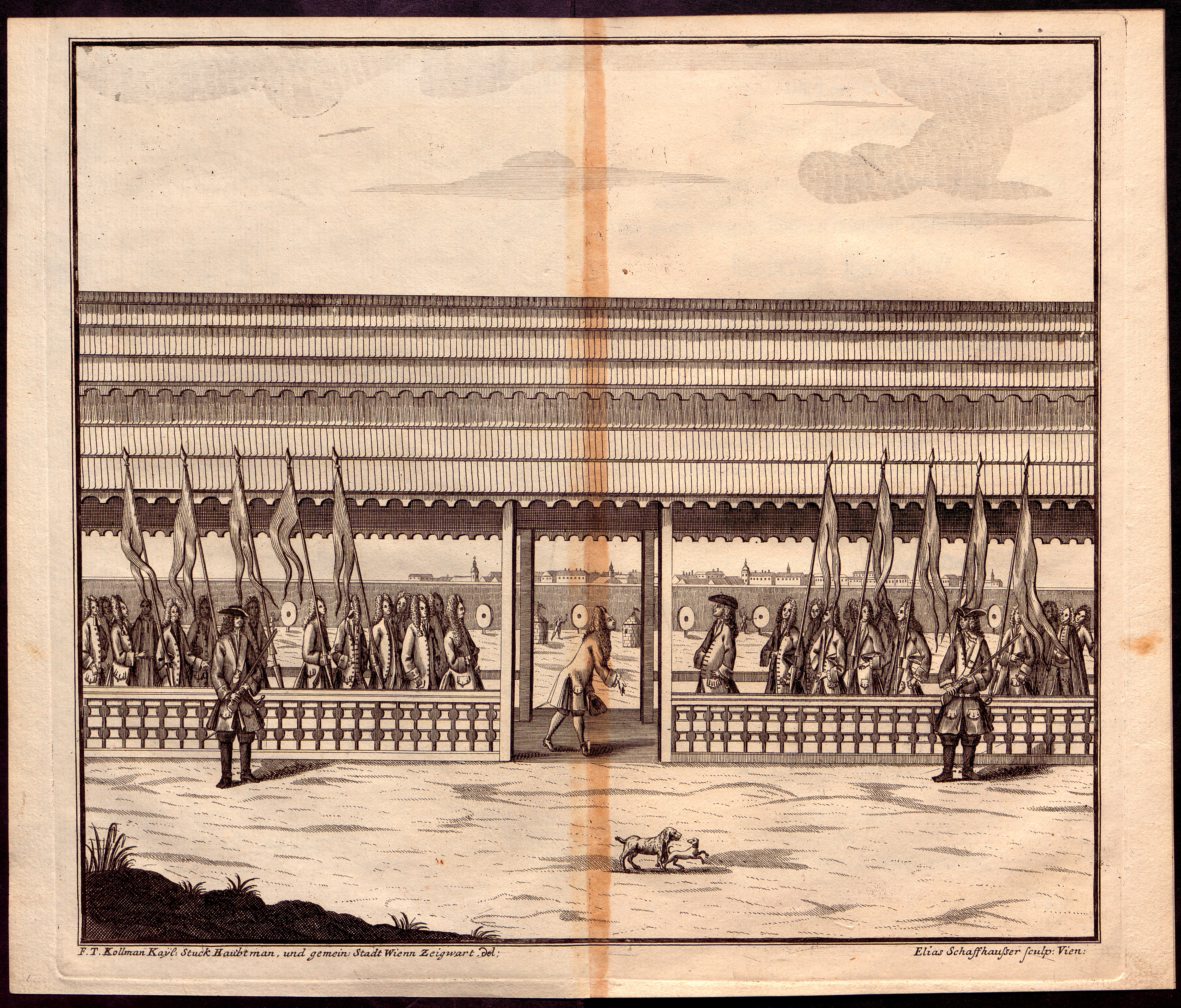 Beschreibung Des Haubt- und Frey-Schiessen, Welches von Ihro Kayser- und Königl. Catholischen Majestät Carolo Sexto, Wegen erfreulichster Geburt Leopoldi, Dero Erst-Gebohrnen Ertz-Hertzogens zu Oesterreich, Und Printzens von Asturien, Der Wiennerischen Burgerschafft gegeben worden / [Elias Schaffhauser ; Franz Tobias Kollmann von Collenau ; Karl VI. ...