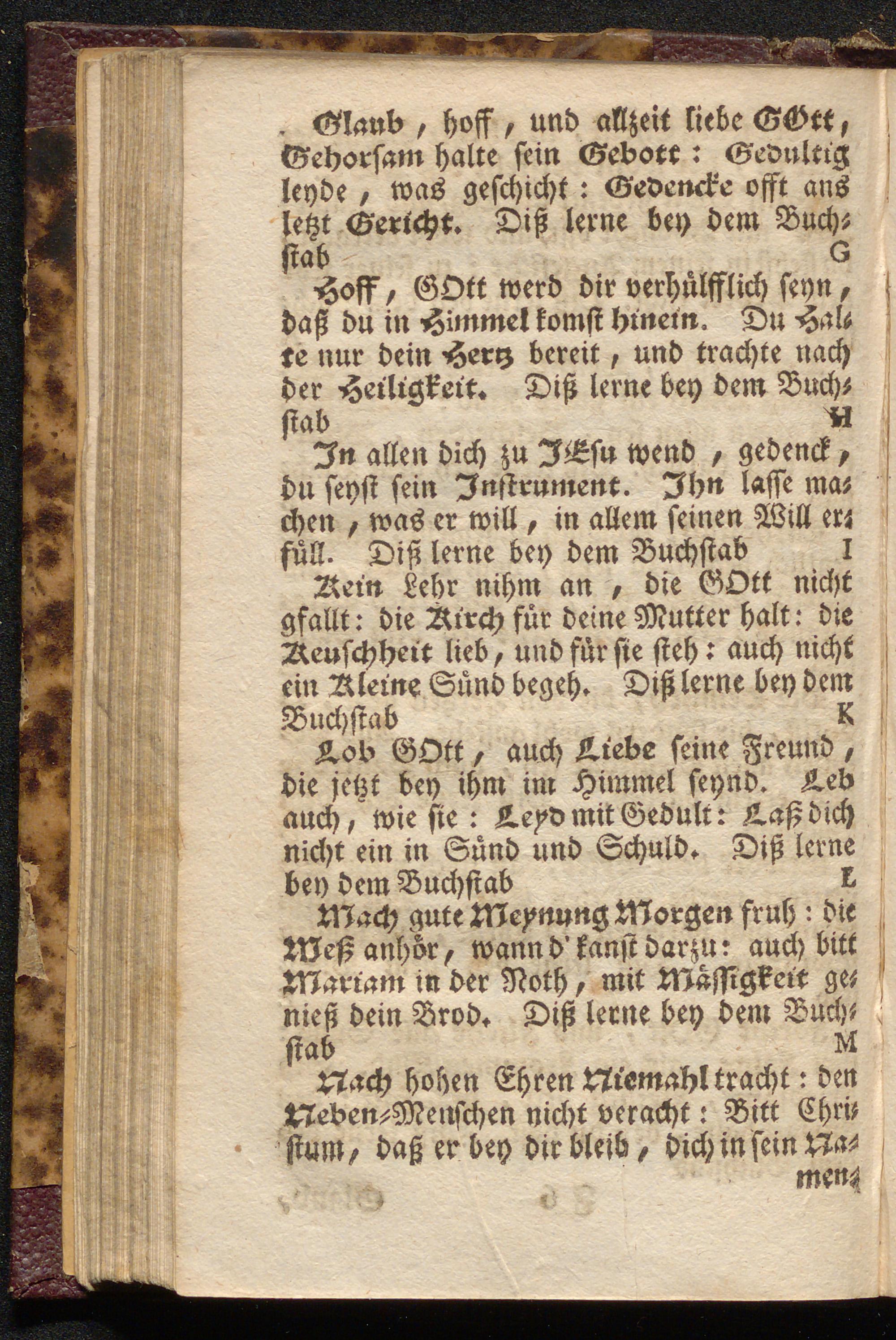 Geistliche In Reim verfaßte Lehren, Ubungen Oder Gesänger Von denen Wahrheiten, Welche Fürnemlich in denen Geistlichen Exercitiis, Missionibus, Wie auch In denen Predigen vorgebracht werden : Wie man nemlich Das Böse meyden, das Gute würcken soll