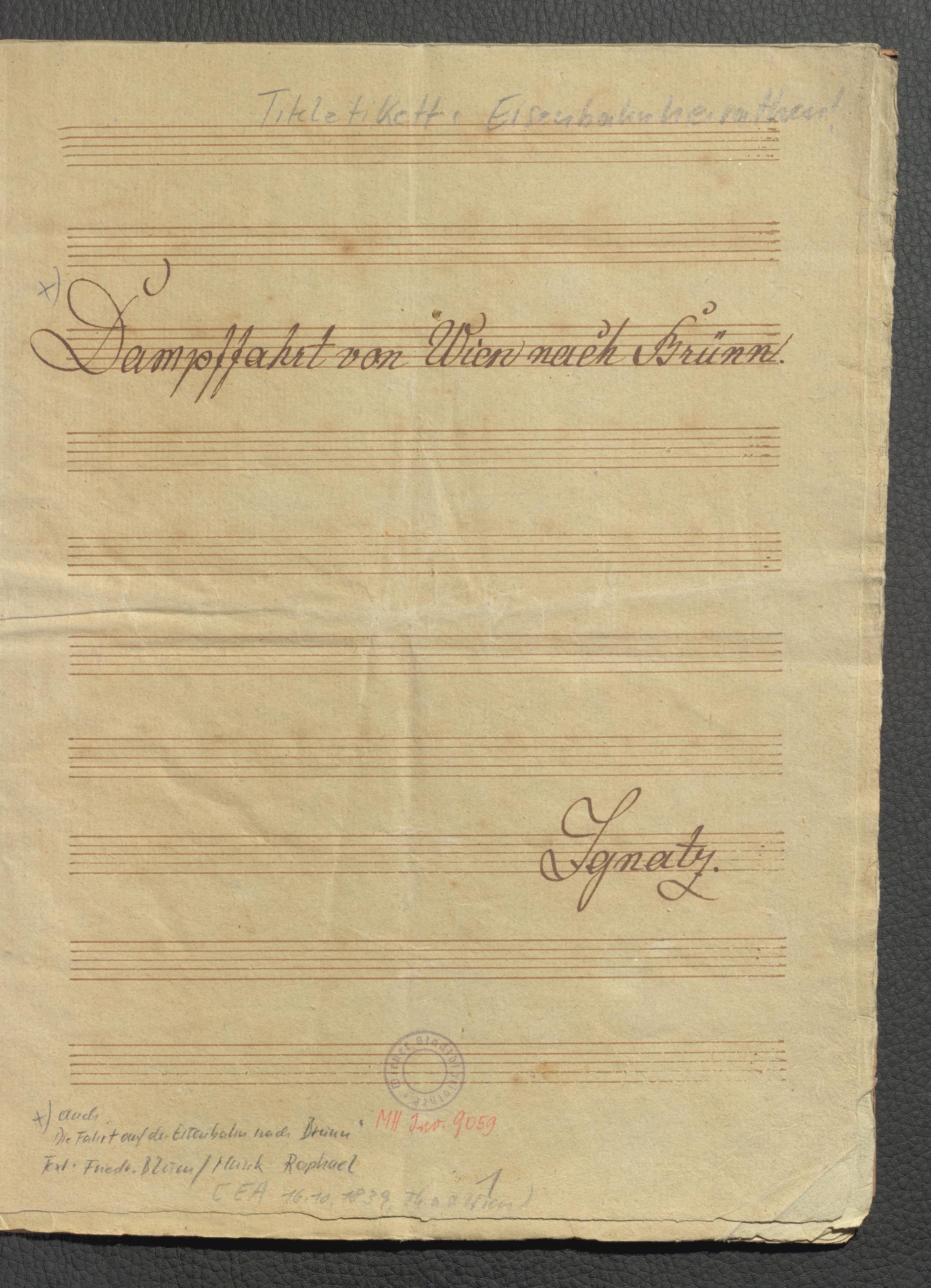 Eisenbahnheirathen [oder:] Dampffahrt von Wien nach Brünn : [Posse mit Gesang in 3 Aufzügen] / [Musik von Andreas Skutta. Von Joh. Nestroy]