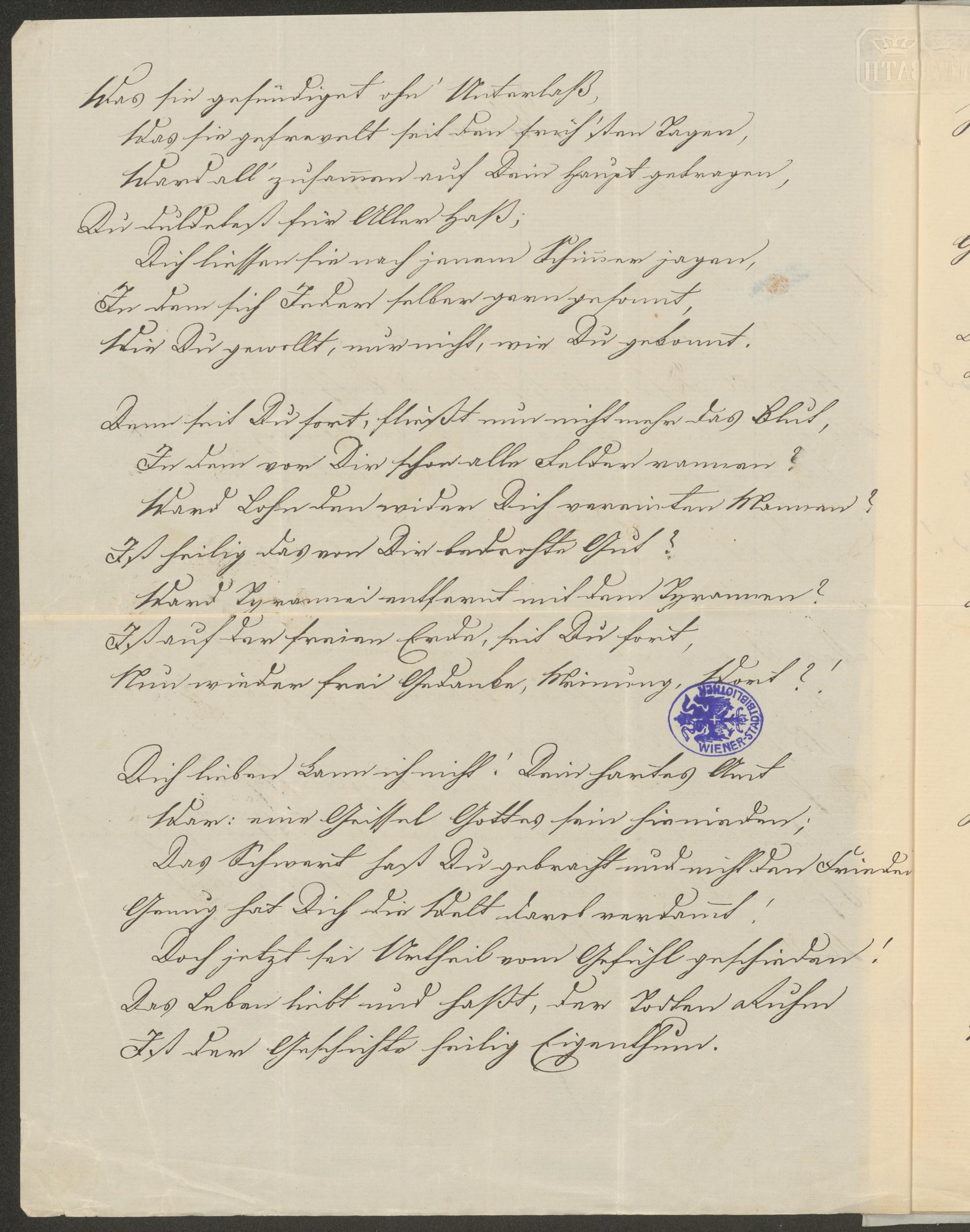 Gedichtsammlung zum Vortrag für Ludwig Löwe bestimmt, darunter Gedichte von Franz Grillparzer, ... Weyl, Theodor von Herzenskron, ... Weissenthurn,