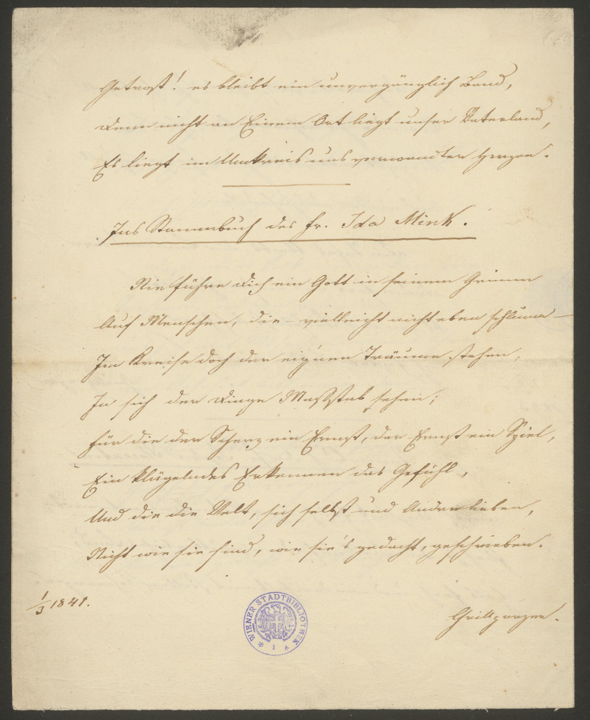 Abschrift der Gedichte "Abschied von Wien", "Ins Stammbuch der Fr. Sophie Florentin" und "In das Stammbuch der Fr. Ida Mink"