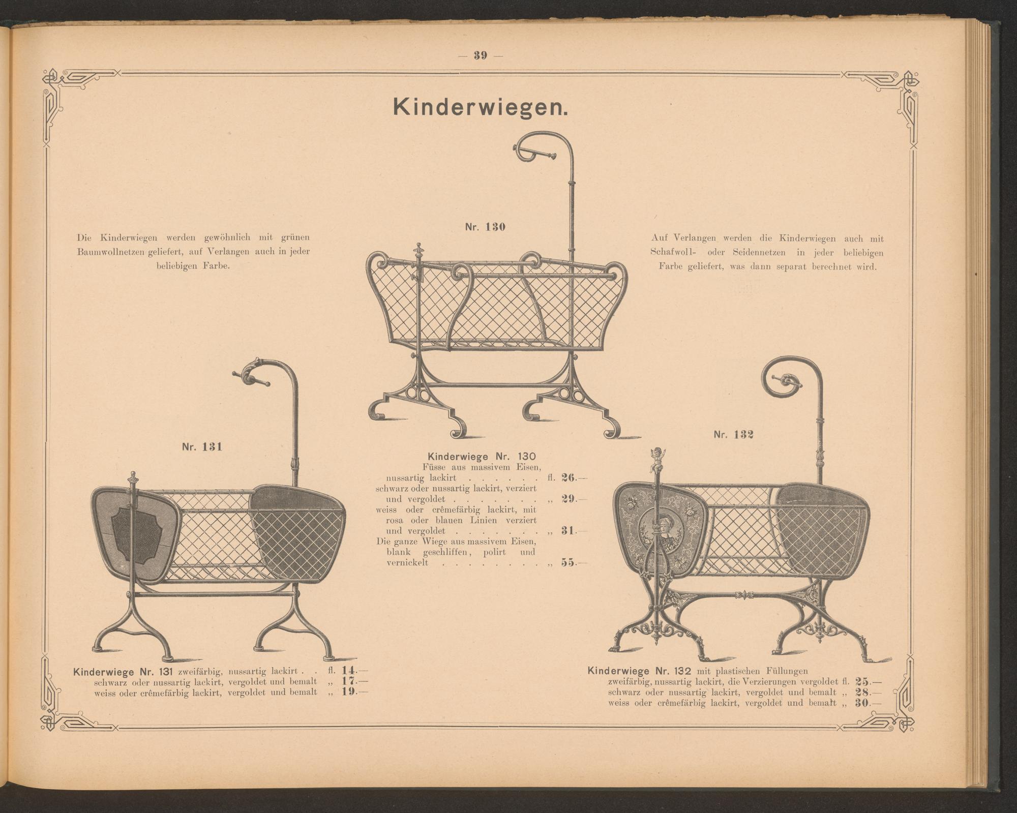 Preis-Courant der Eisenmöbel-Fabrik Sigm. Eisler, Wien, II. Untere Donaustraße No. 41 nächst der Aspernbrücke : Drahtmatratzen- und Krankenwagen-Fabrik : complete Einrichtungen für Hotels, Spitäler etc. : großes Lager aller Gattungen Zimmer- u. Gartenmöbel : über Messingbetten u. Messingmöbel separater Preis-Courant / Sigm. Eisler, Wien