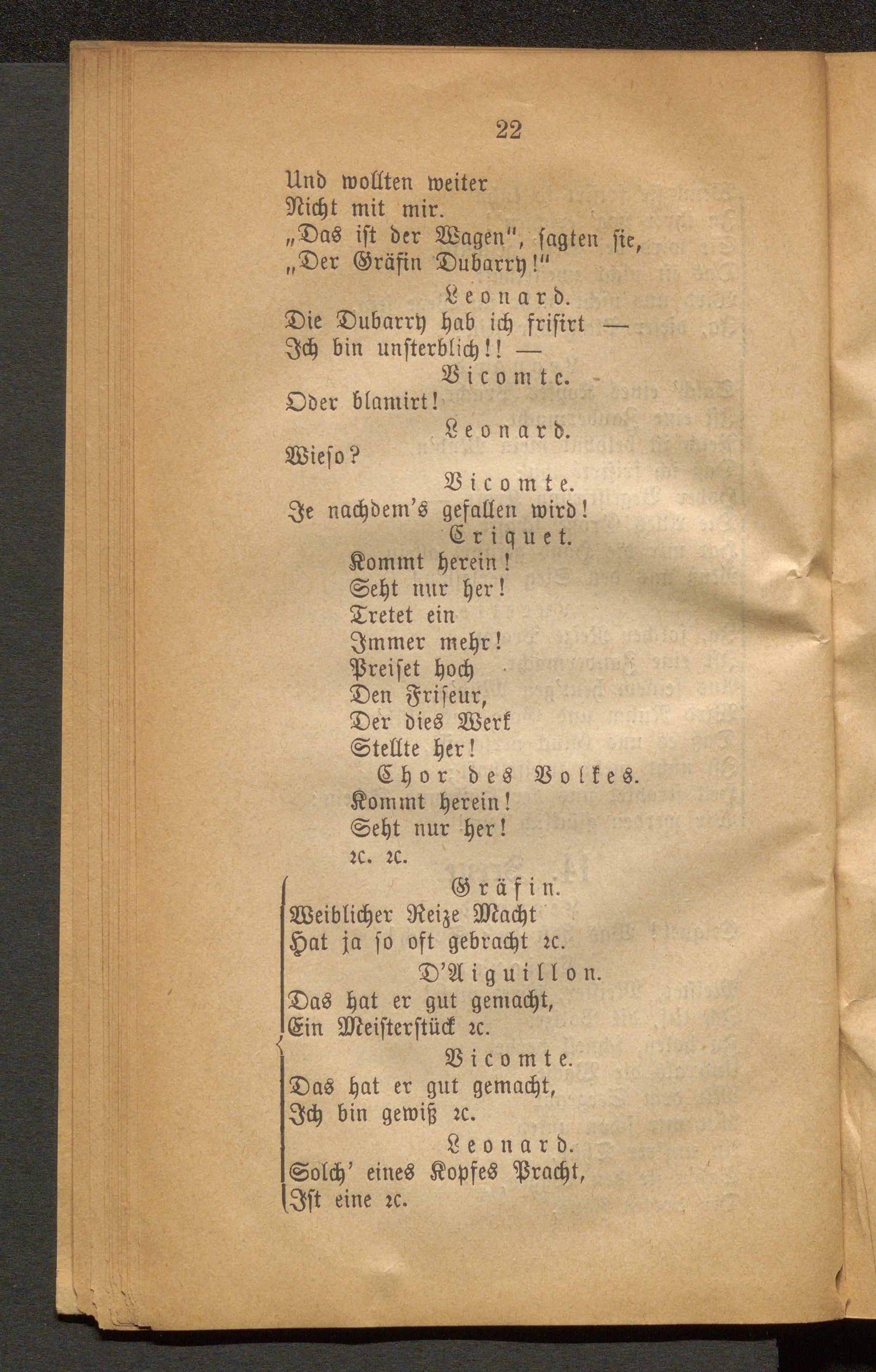 Arien und Gesänge aus Gräfin Dubarry : komische Oper in 3 Acten / frei nach einem französischen Lustspiele von F. Zell und Richard Genée ; Musik von Carl Millöcker