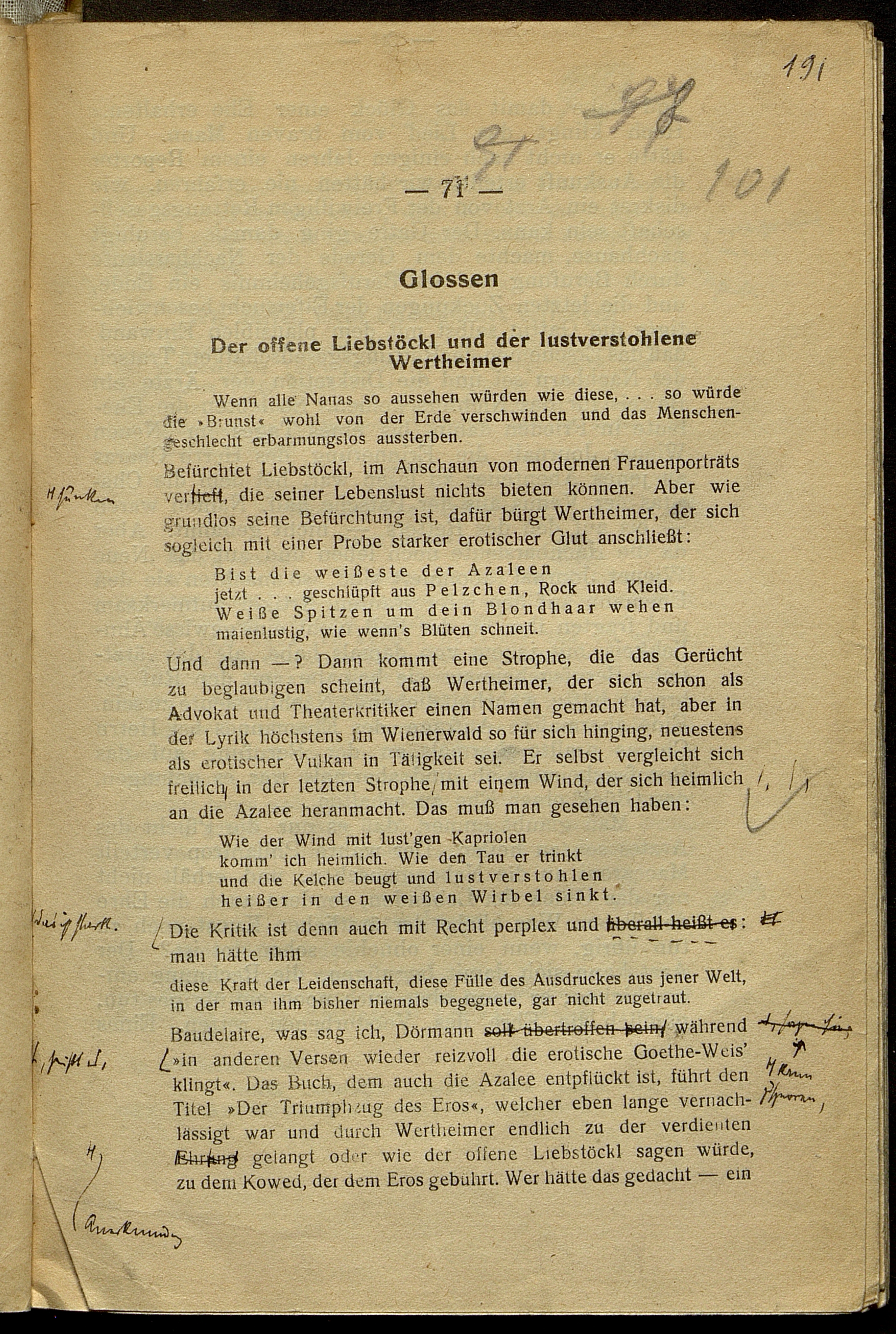Druckfahnen von Karl Kraus zur Fackel Nr. 751/756